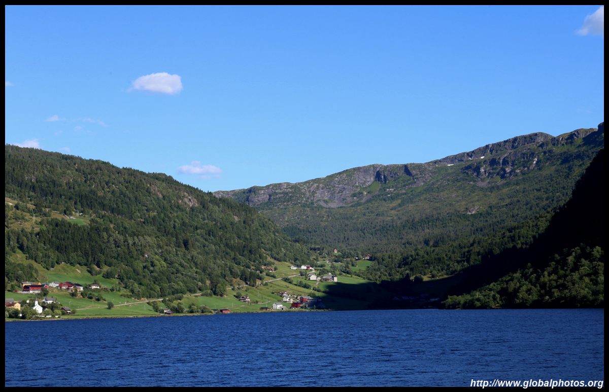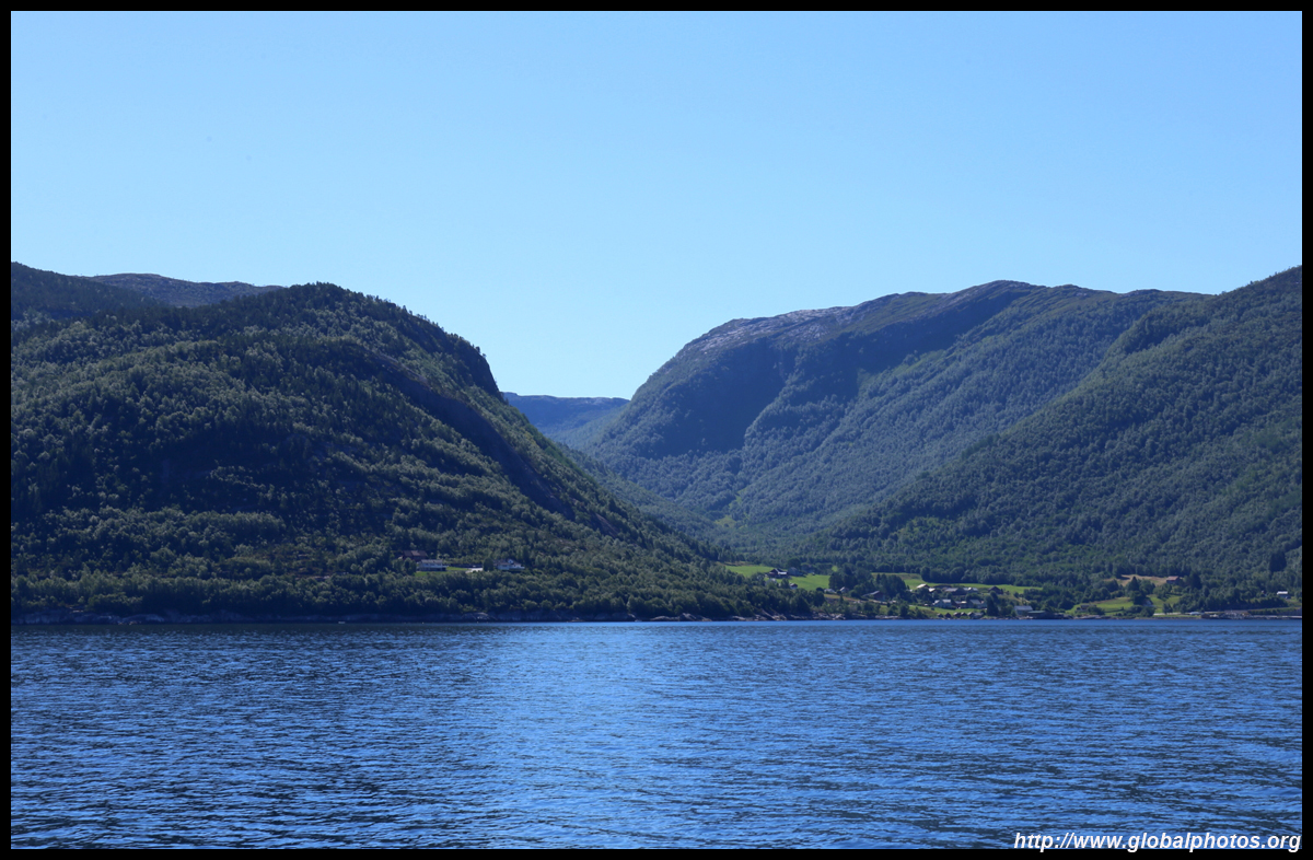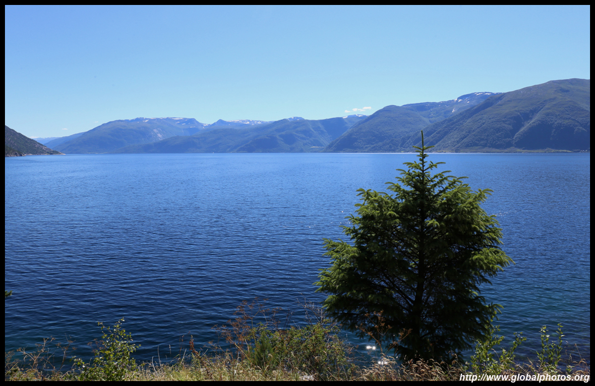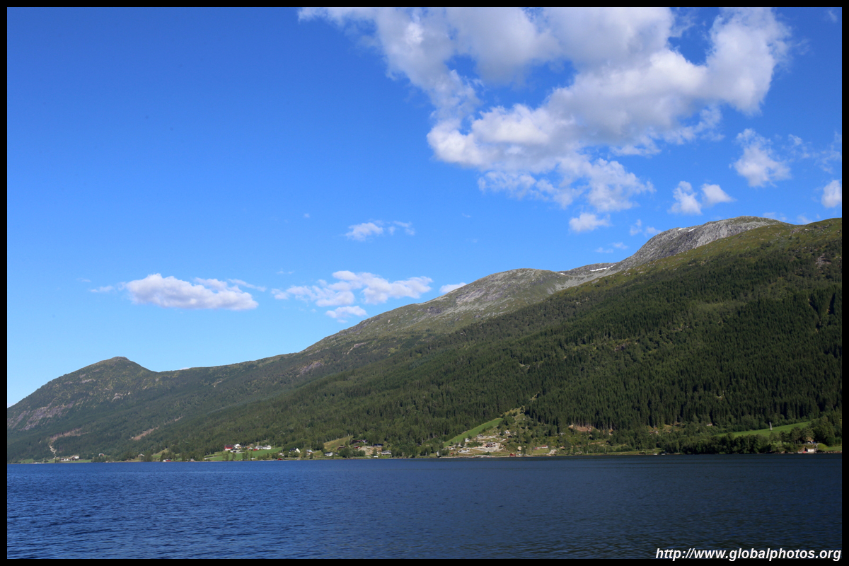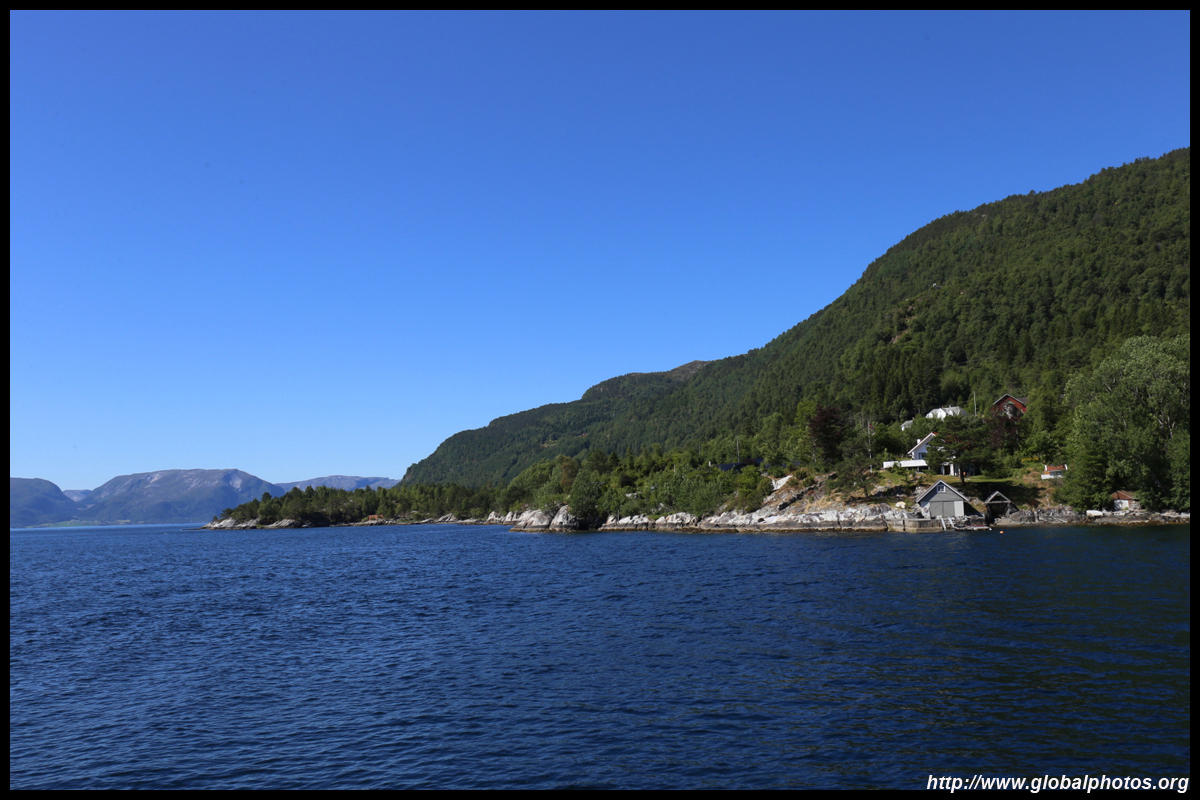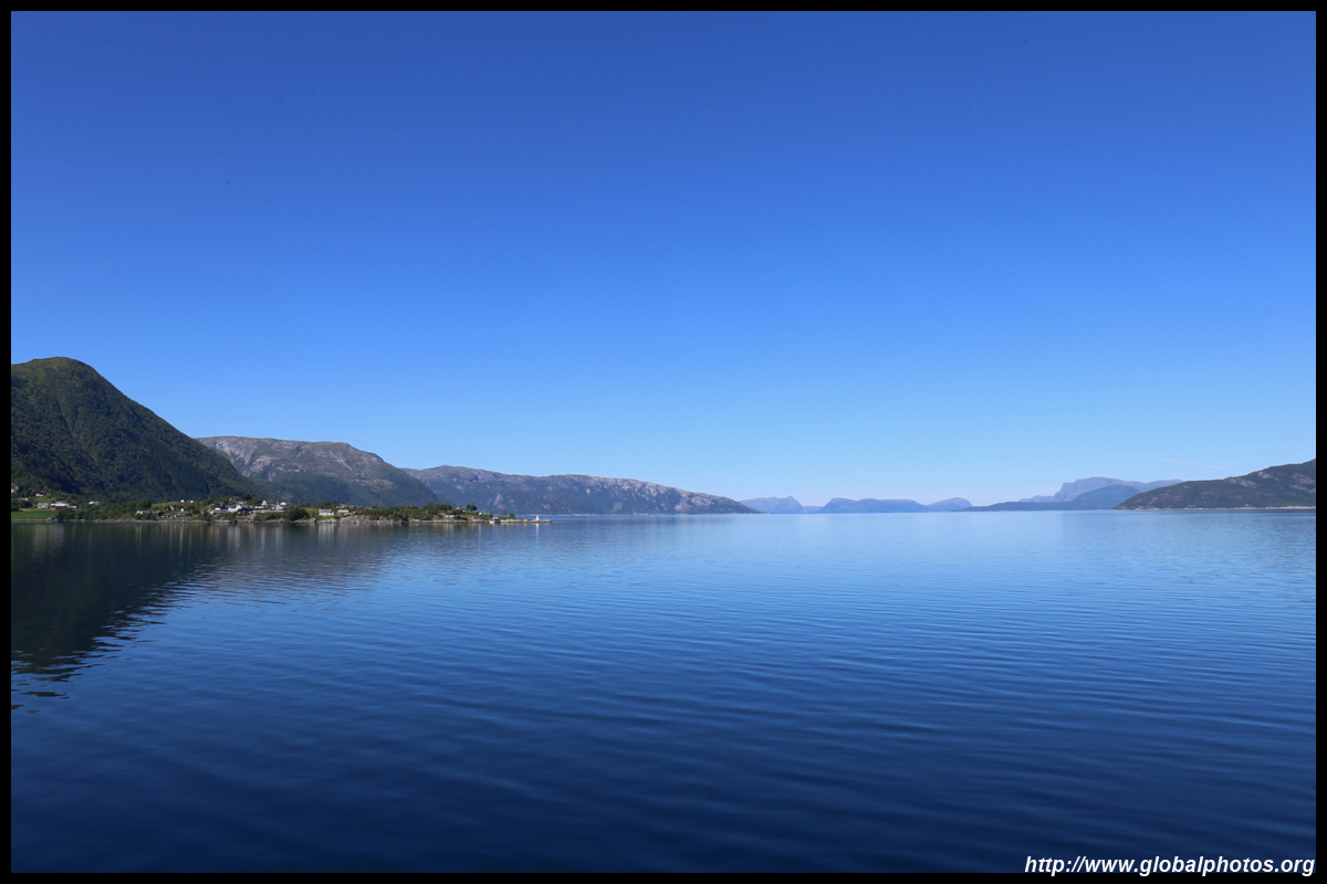 The road turns into a ferry at Ytre Oppedal. Many highways in the country pass through bodies of water, and regular ferries transport both vehicles and people across, where the road resumes.