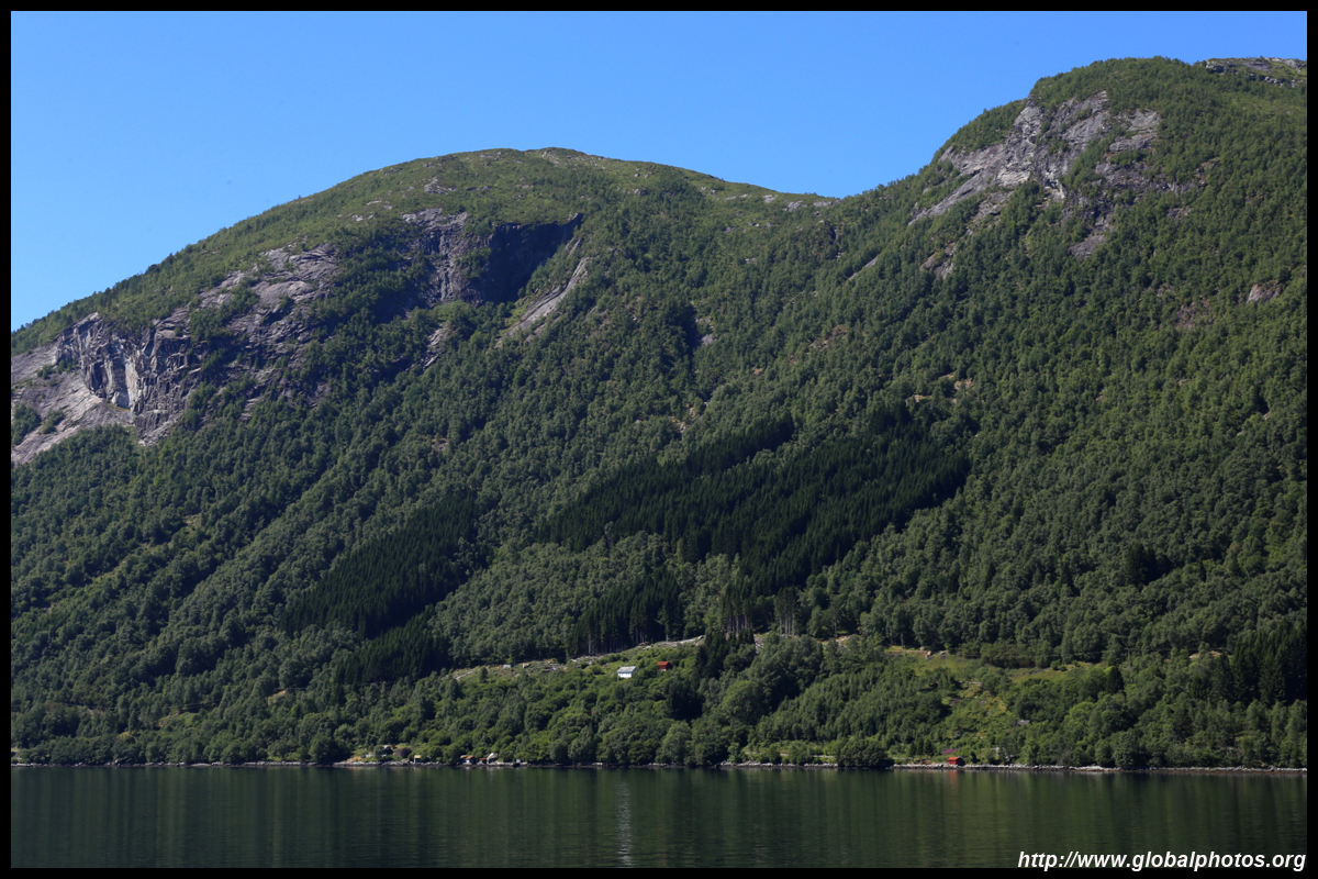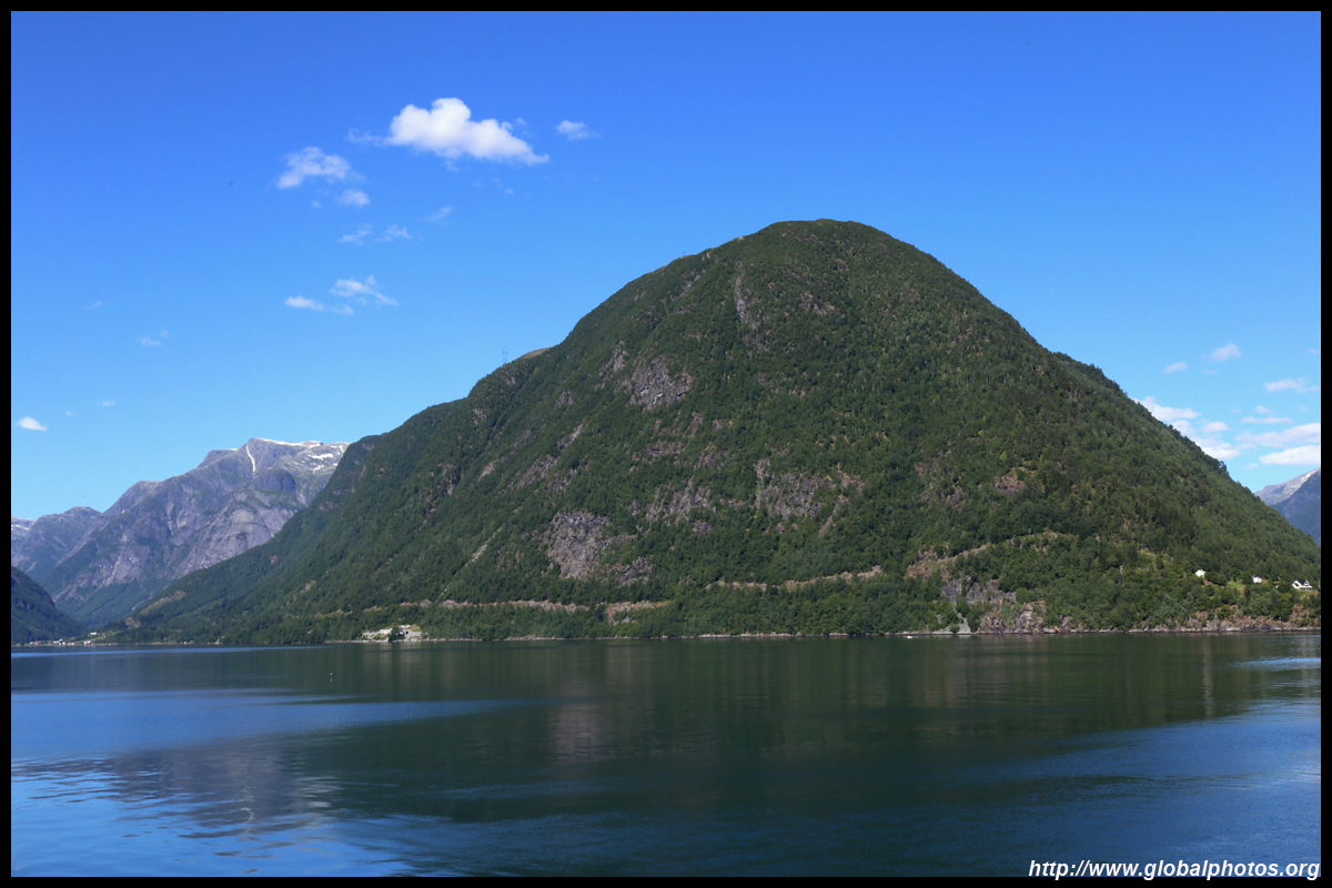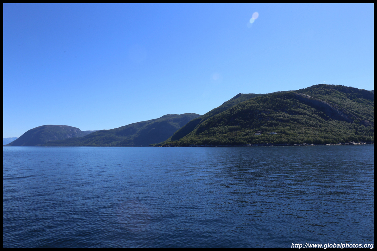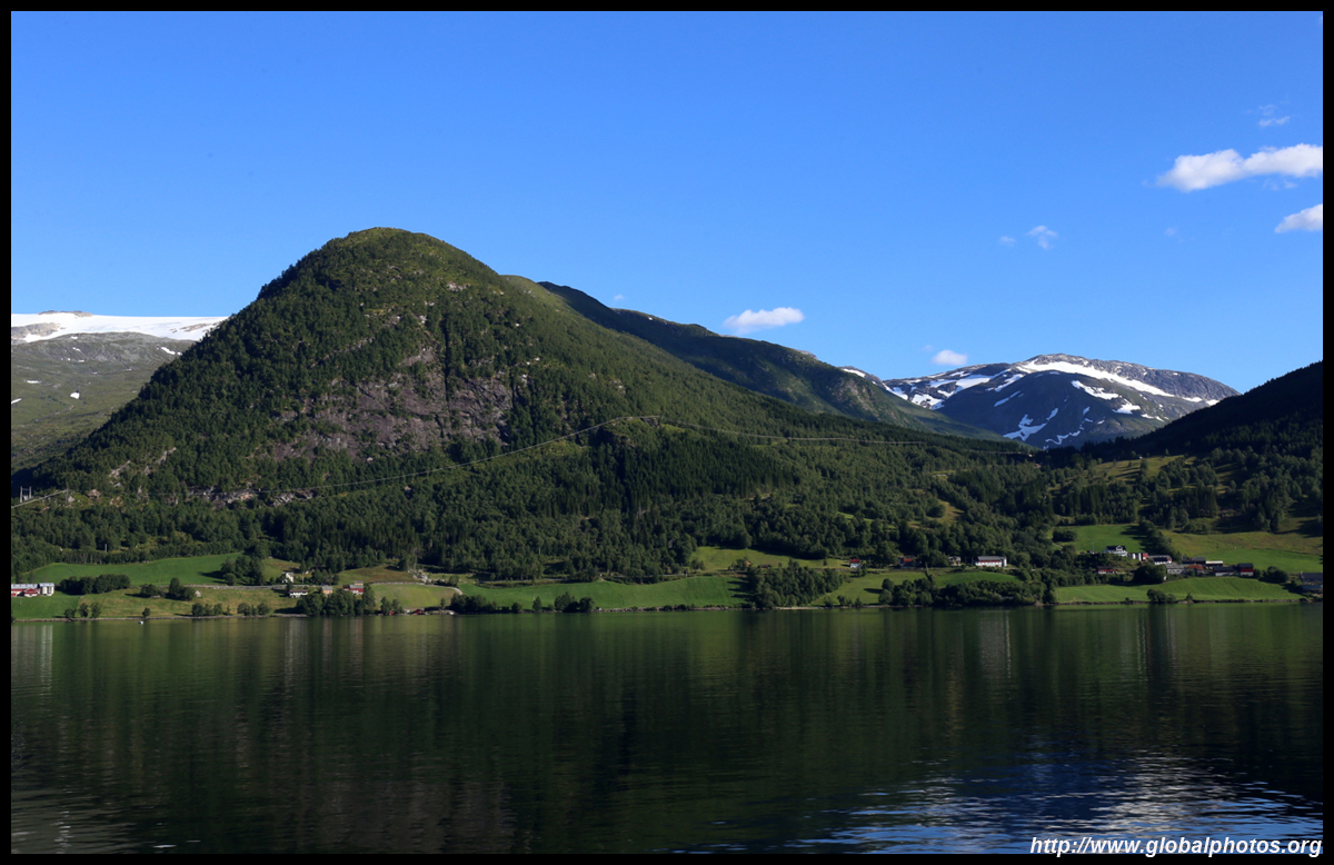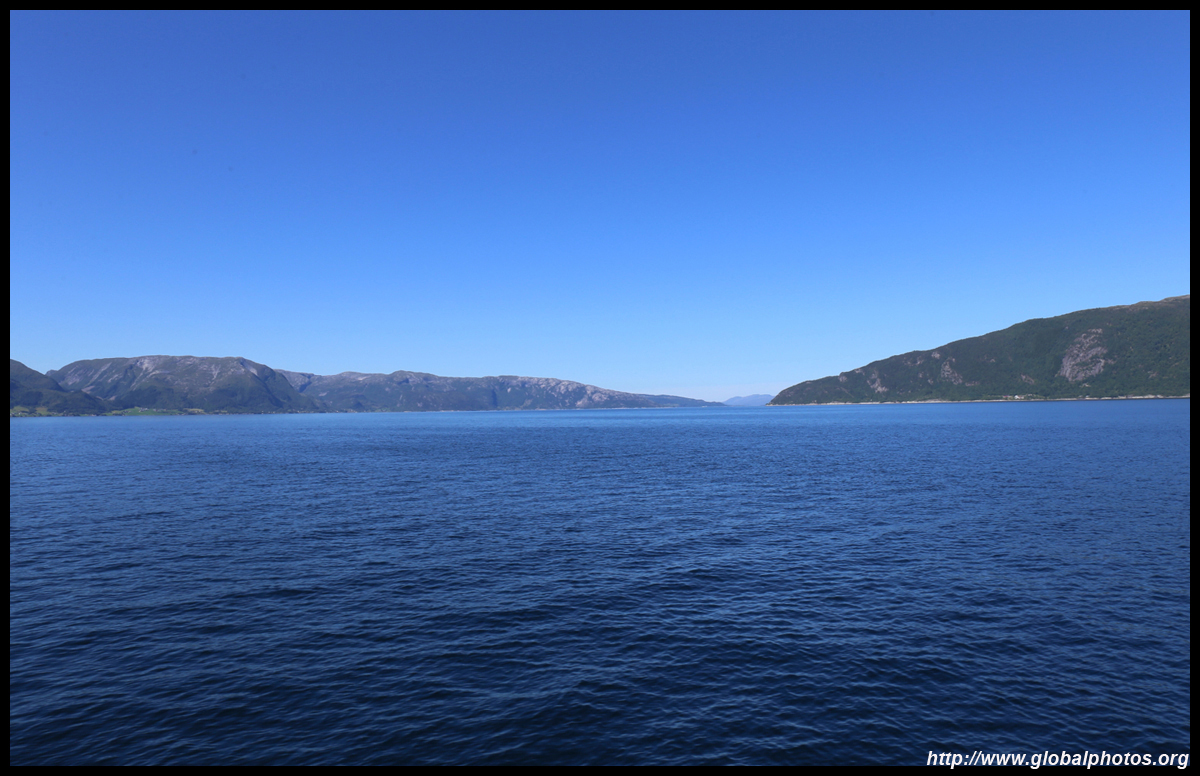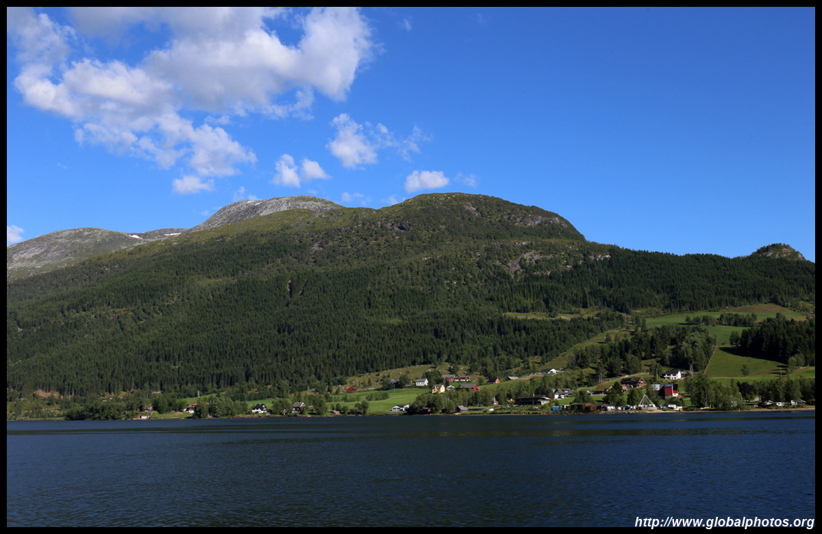 The road turns into a ferry at Ytre Oppedal. Many highways in the country pass through bodies of water, and regular ferries transport both vehicles and people across, where the road resumes.