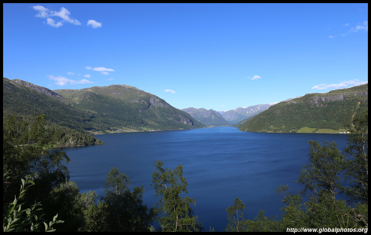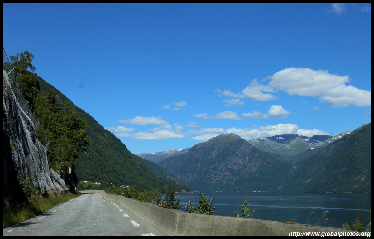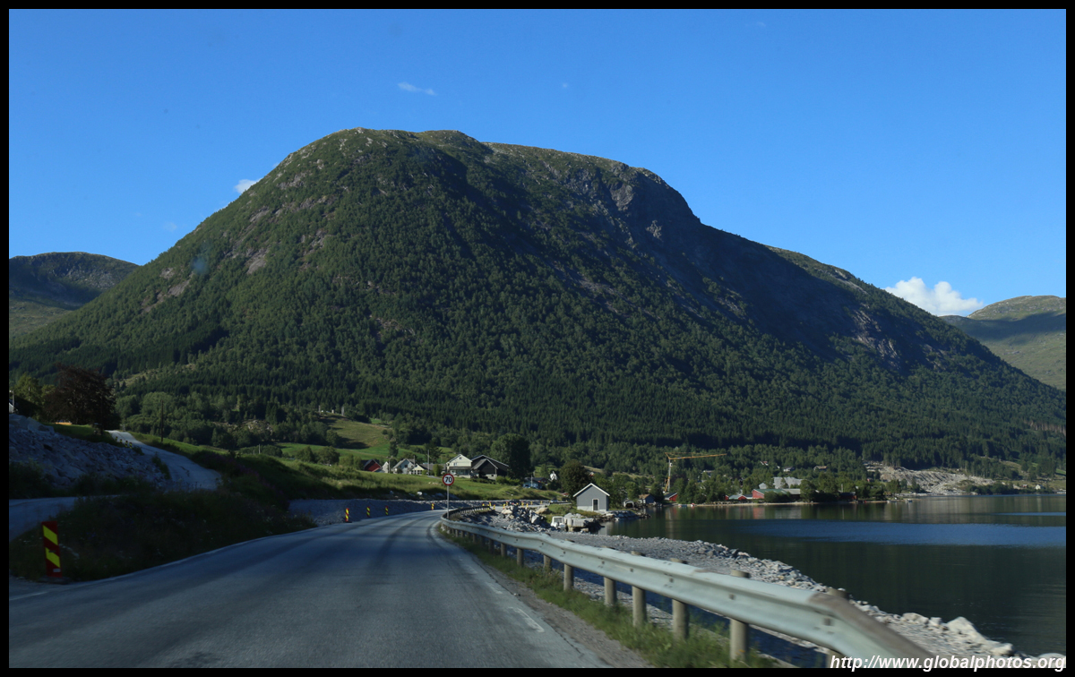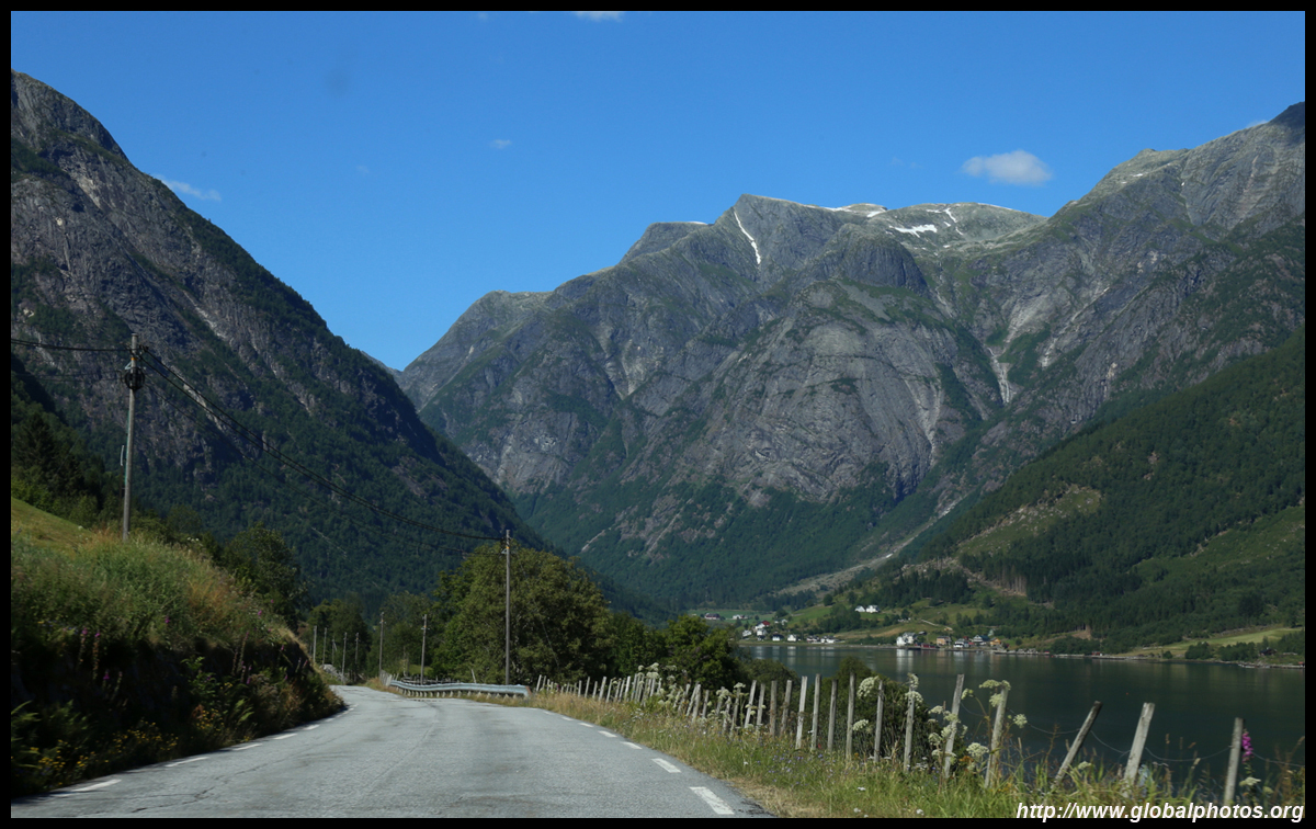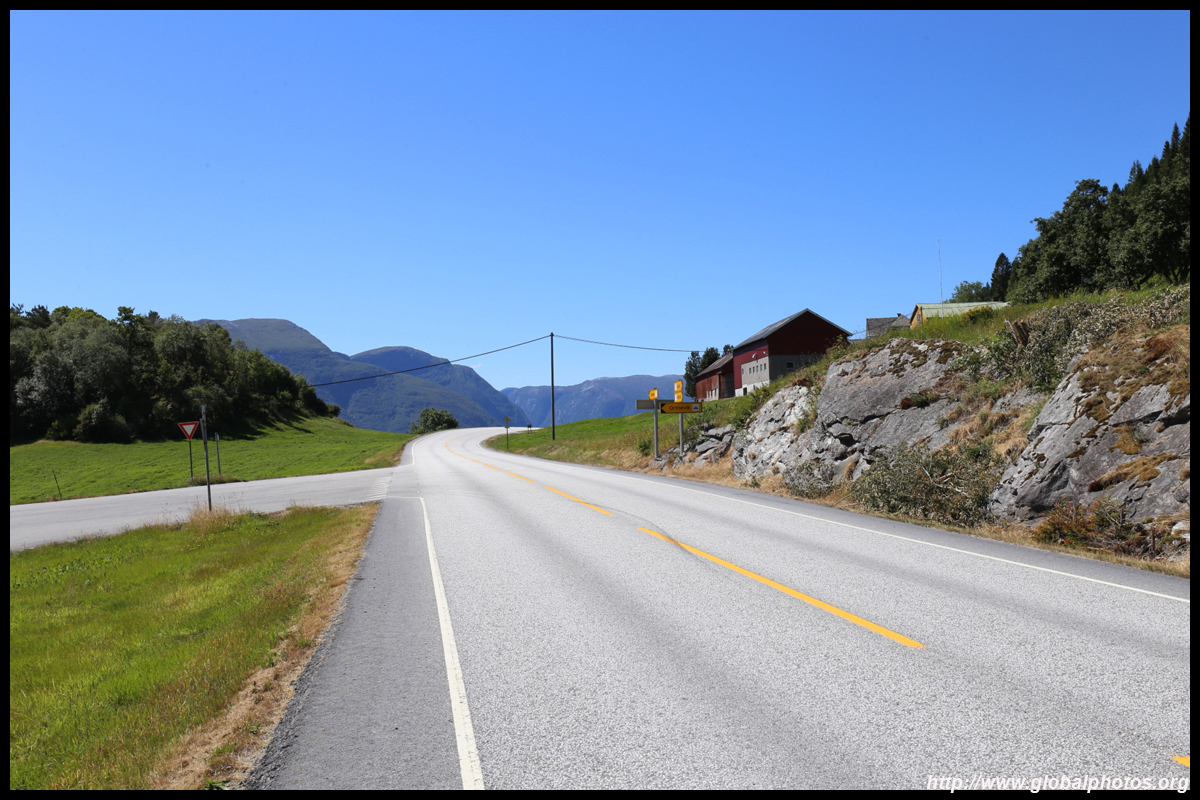 Leave the highway again at Byrkjelo and take the 60, or Utvikfjellet. You will reach the top of the mountain and zig-zag your way back down to the fjord with lovely views.