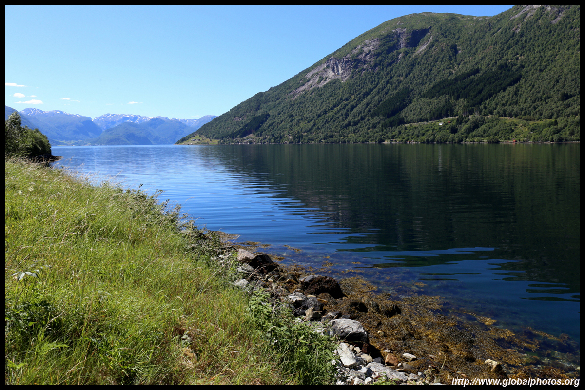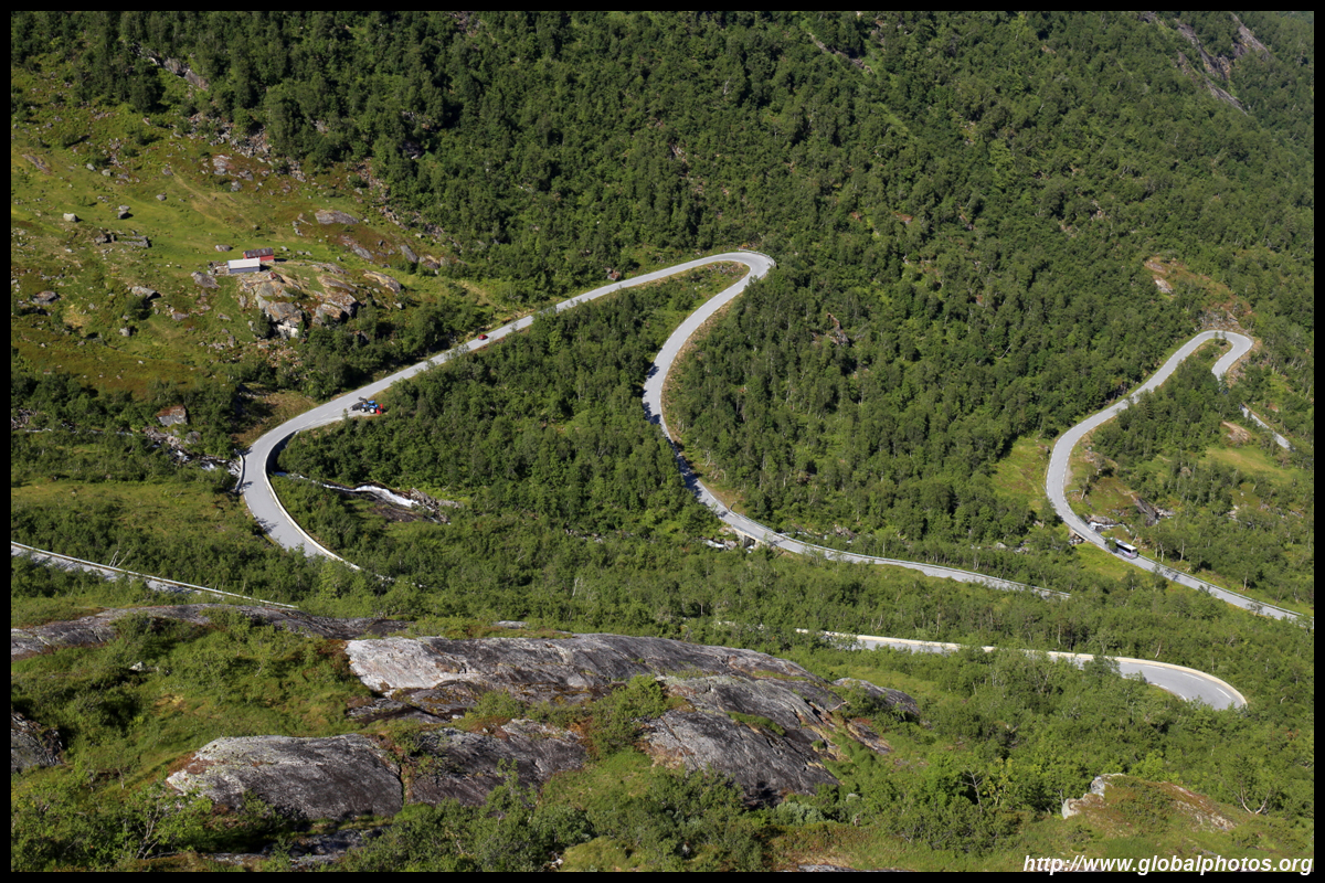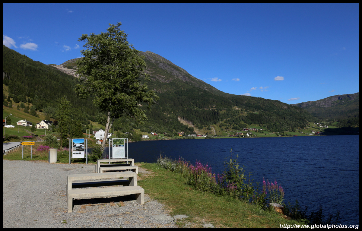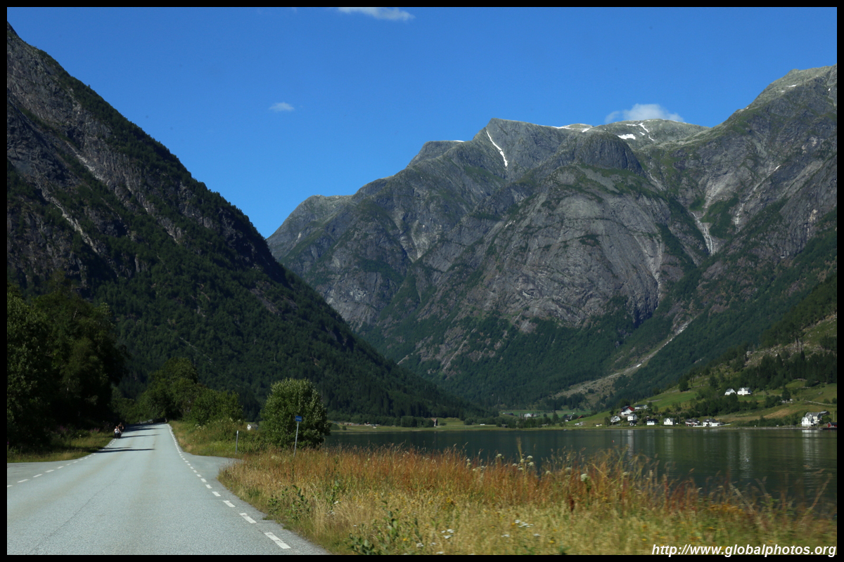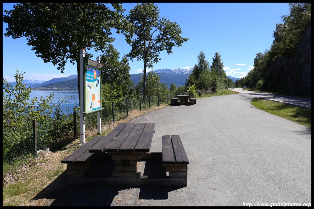 Leave the highway again at Byrkjelo and take the 60, or Utvikfjellet. You will reach the top of the mountain and zig-zag your way back down to the fjord with lovely views.