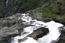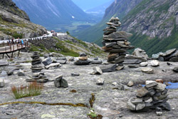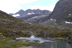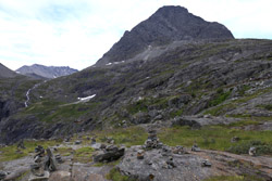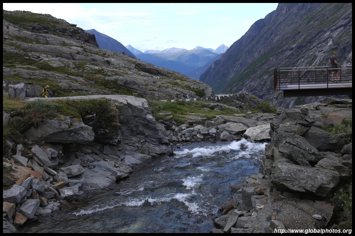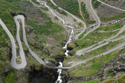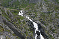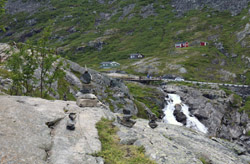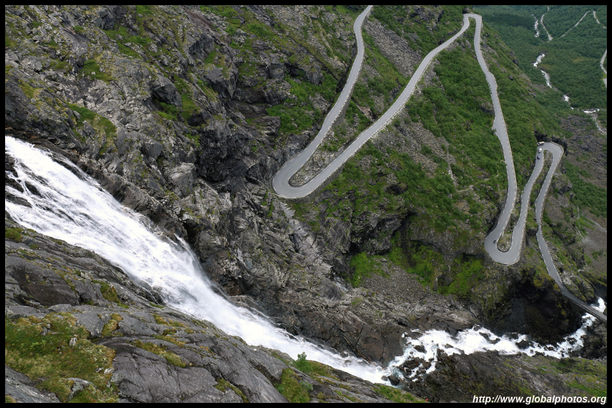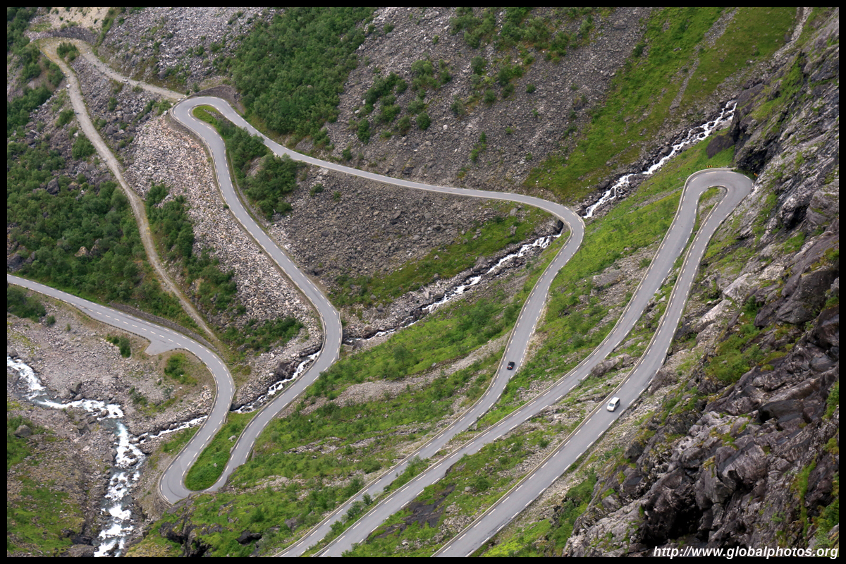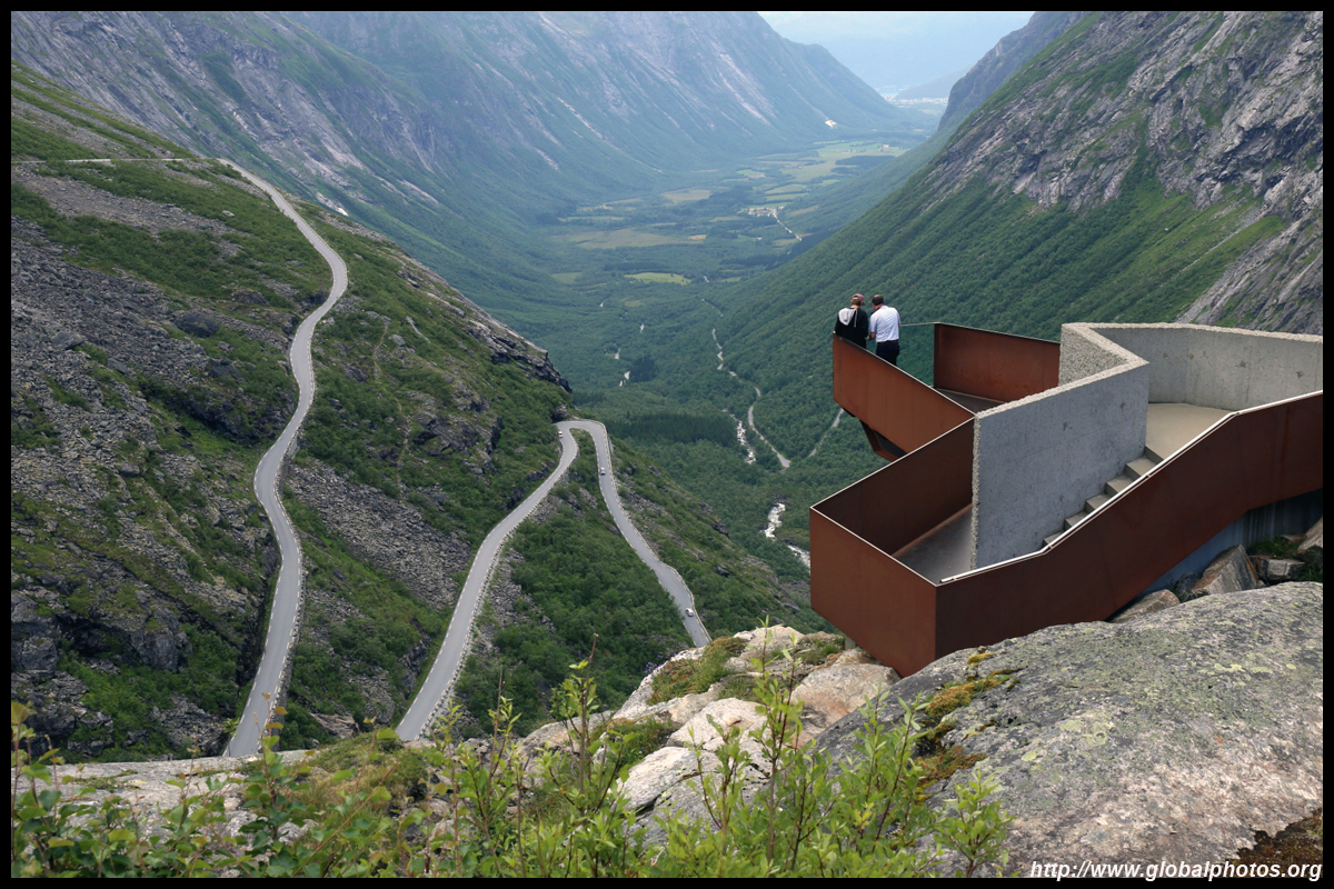 Setting off from Stryn, it is already a long day sightseeing at the Geirangerfjord. However, with the summer midnight sun, you likely can continue past Geiranger to 1 more major attraction in the area, Trollstigen. After the Eagle Road, continue north along the 63, which will dip into the sea at Eidsdal for a short ferry crossing. The 63 resumes on the other side of the coast towards the viewpoint.
