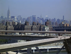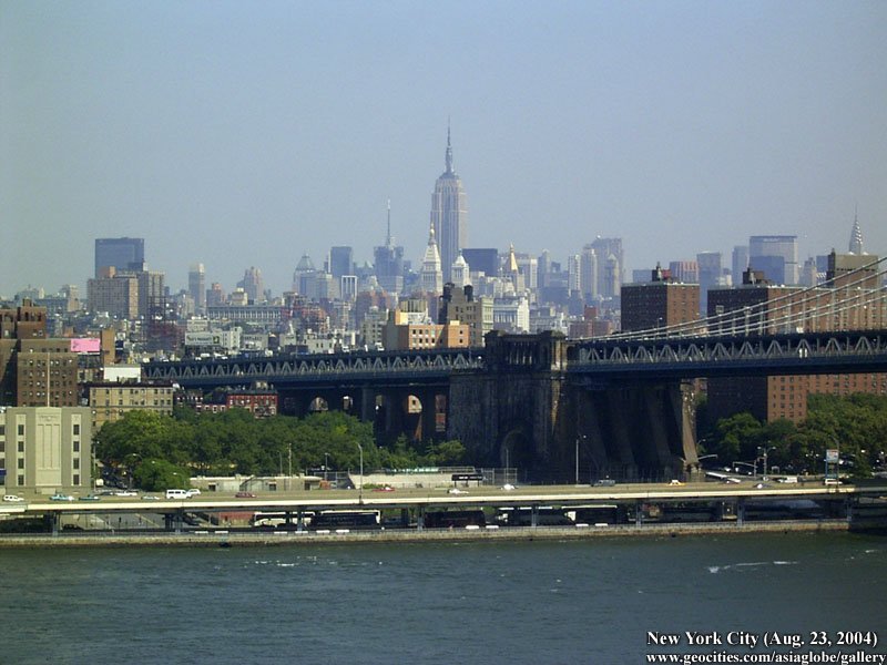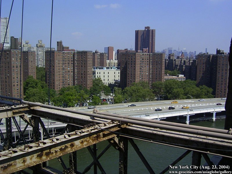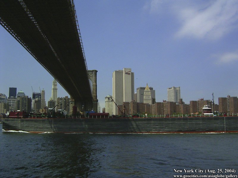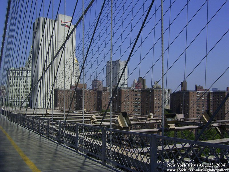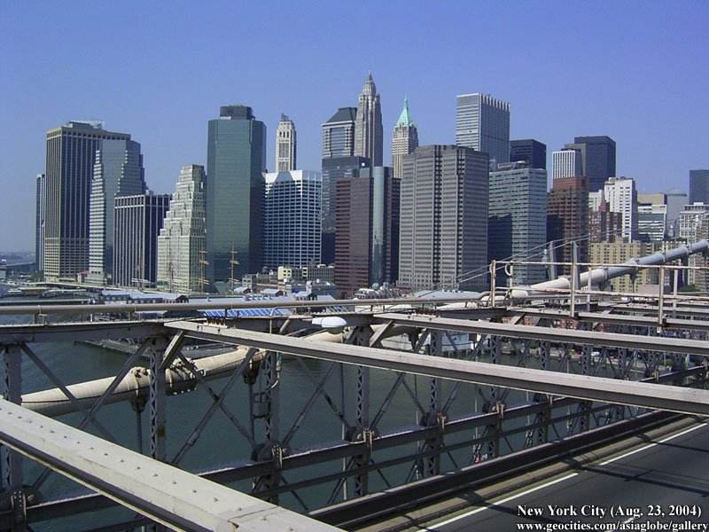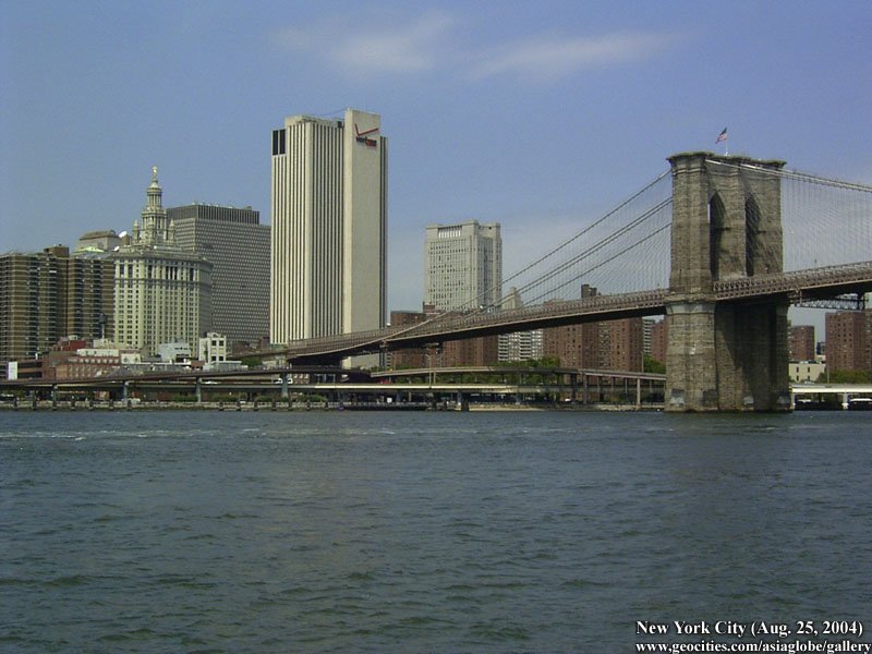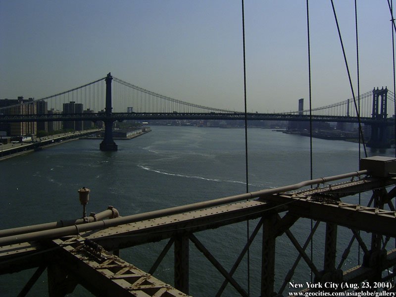Designed by the brilliant engineer John Augustus Roebling (1806-1869) and completed by his equally ingenious son Washington Roebling (1837-1926), this elegant structure was, at the time of its completion in 1883, the longest suspension bridge in the world. Anchored across the lower East River by two neoGothic towers and a delicate lacework of steel-wire cables, the soaring lines of the Brooklyn Bridge have inspired countless architects, engineers, painters and poets to pursue their own expressions of creative excellence, among them Frank Lloyd Wright, Hart Crane, Walt Whitman, Georgia O'Keefe, Joseph Stella, John Marin and Lewis Mumford.