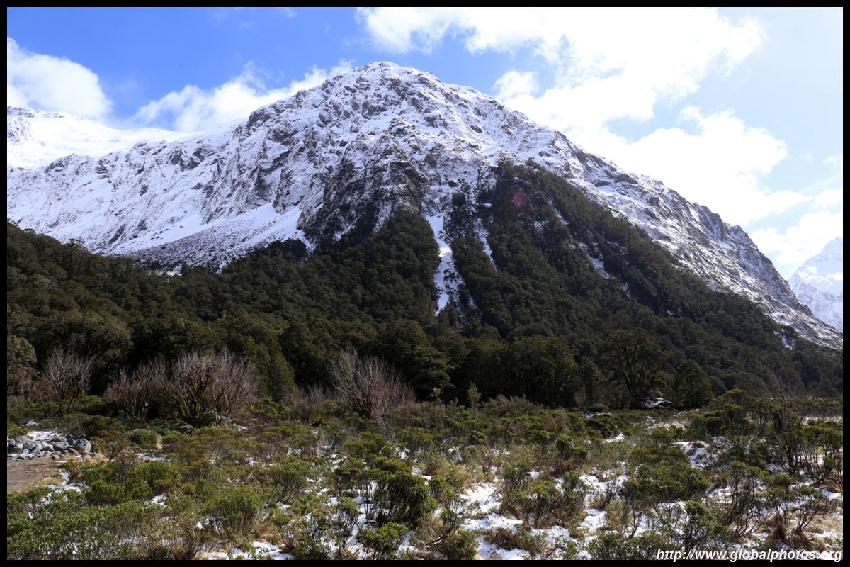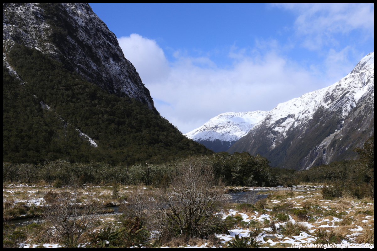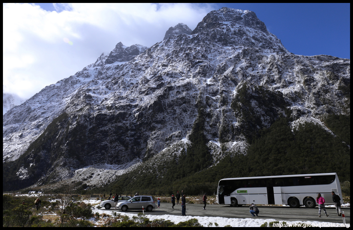 Milford Sound is actually very close to Queenstown on a straight line - directly northwest. However, there is no road through the mountains, which is why we need to do a U-shaped 4-hour drive south, west, then back north. However, the beautiful Milford Highway out of Te Anau is a tourist attraction itself. The tour bus made many stops along the way so we could get off to admire the scenery.