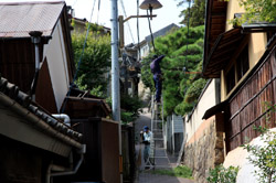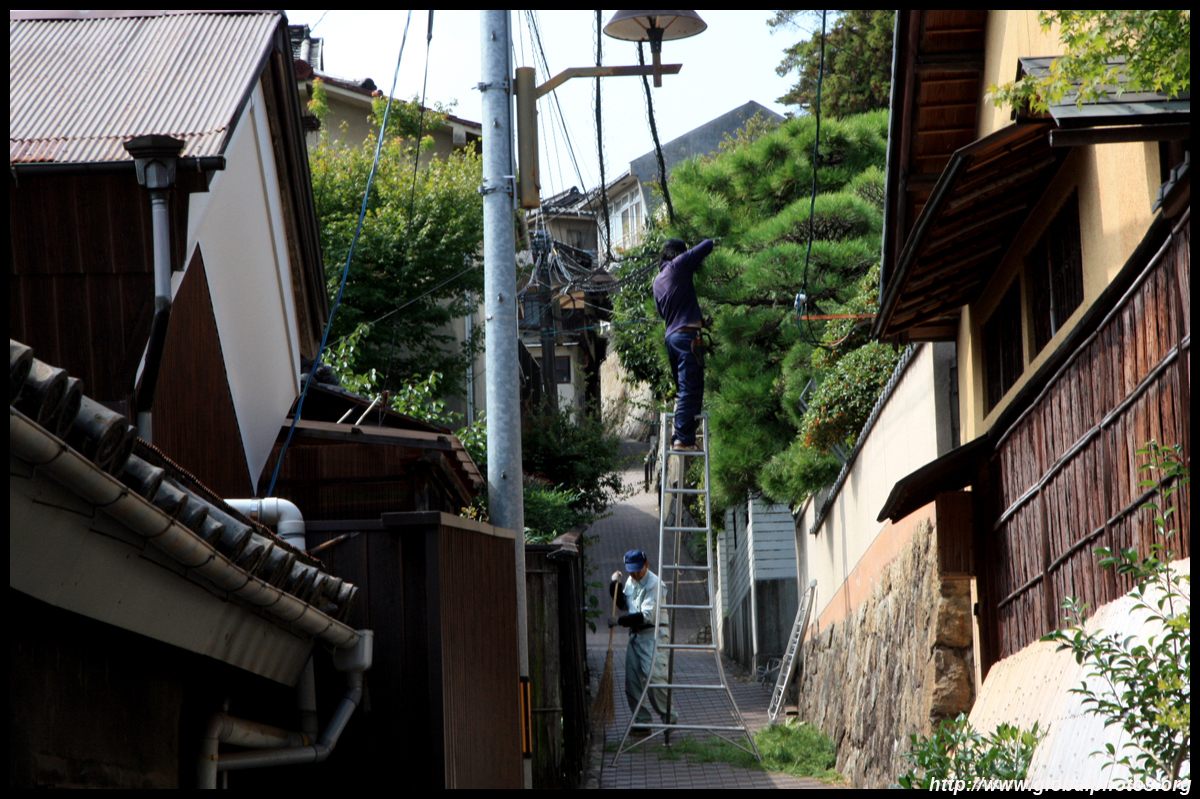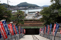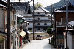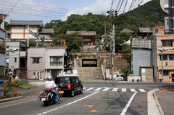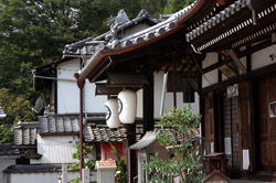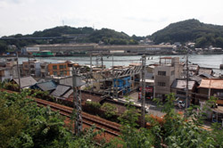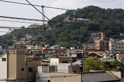 The temples on the east side of the cable car were less interesting. Soon, the train tracks were visible again.