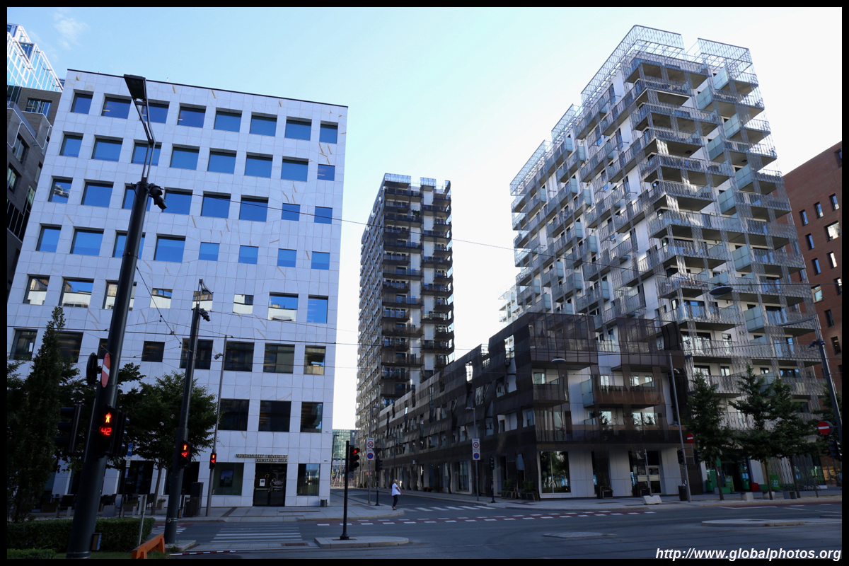 Starting from outside Oslo's main train station, Barcode is a new architecture zone where some 10,000 people work. The area was returned to the people in 2000 when the harbour was moved. The revised city plan was approved in 2003, envisoning a series of narrow buildings, with the 12 that make up the district today being spaced to make the area look like a barcode.Construction began in 2005 and the last building was completed 11 years later. Surrounding these 12 are a number of other newer buildings, albeit not officially part of Barcode.