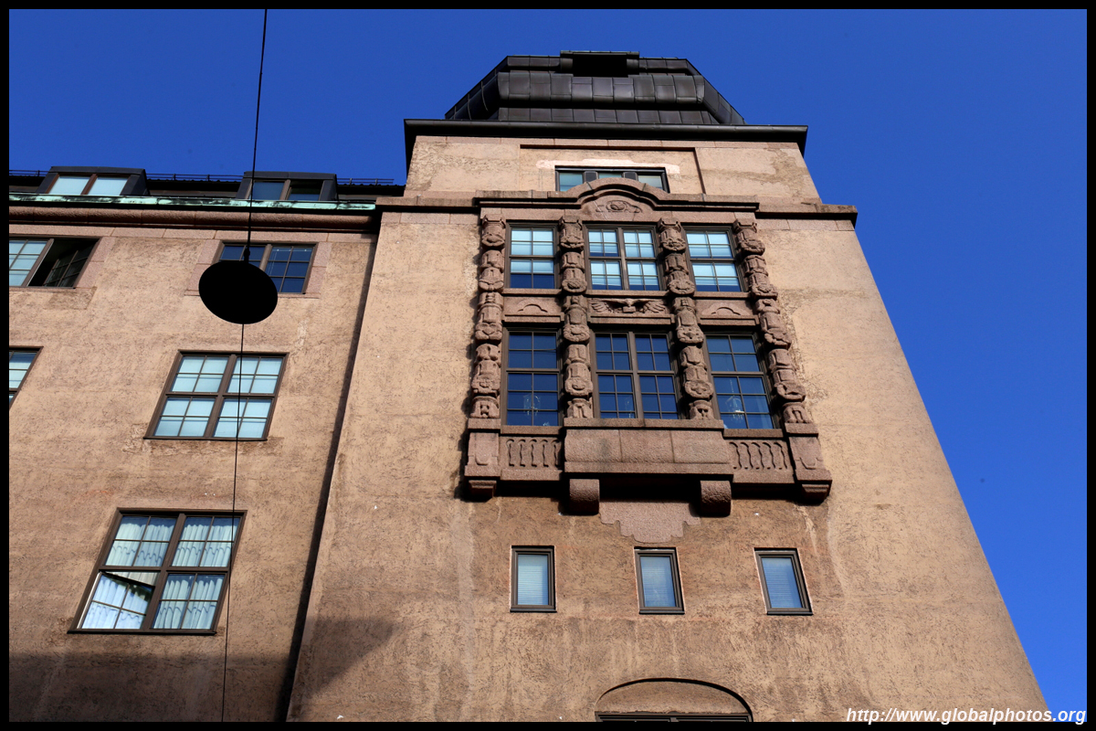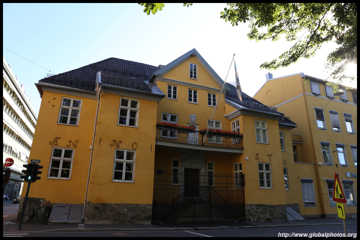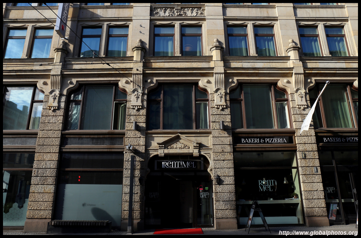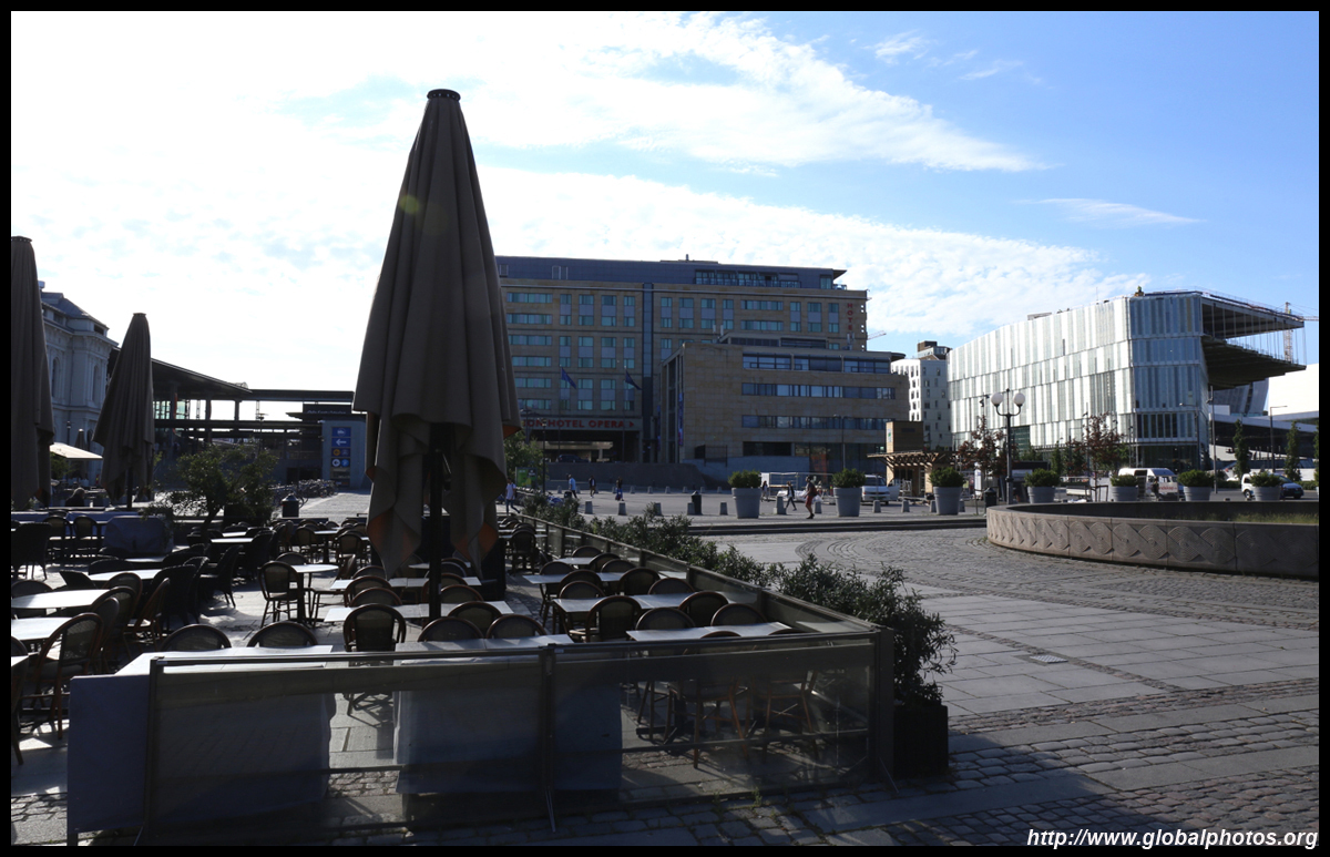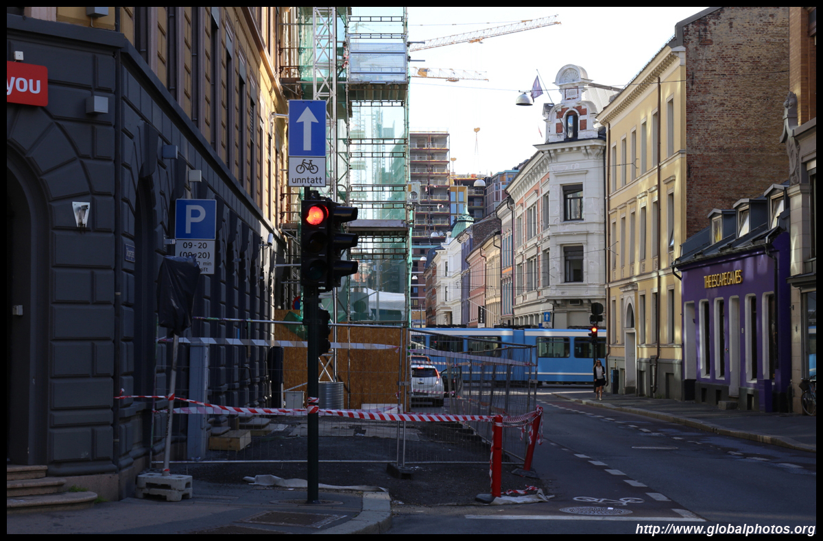 Oslo Bors, the stock exchange, occupies a historic building near the harbour. The surrounding streets are lined with similar-height buildings. They are not particularly grand, but are clearly part of an organized city plan.