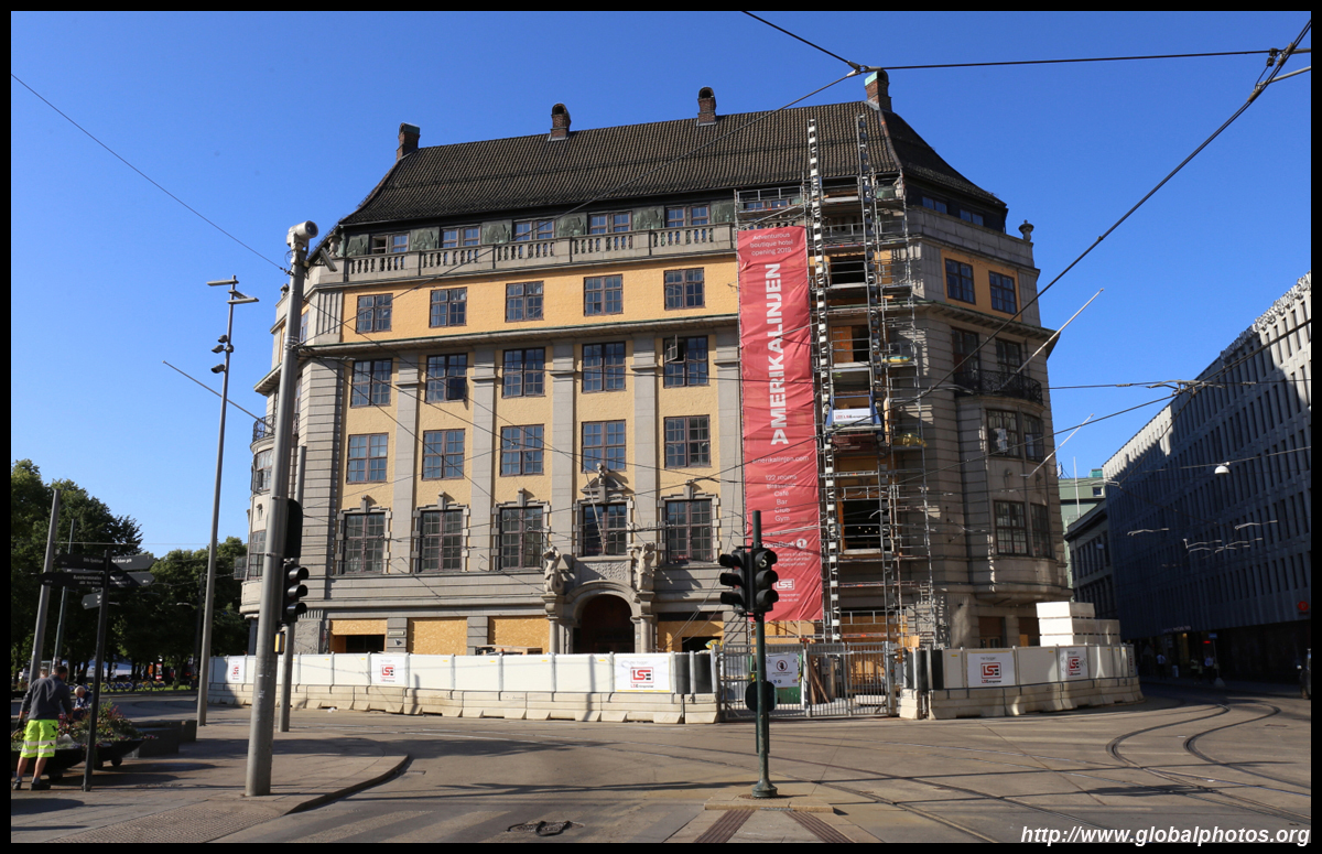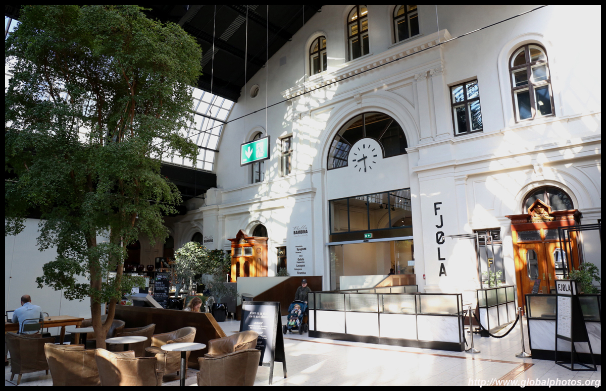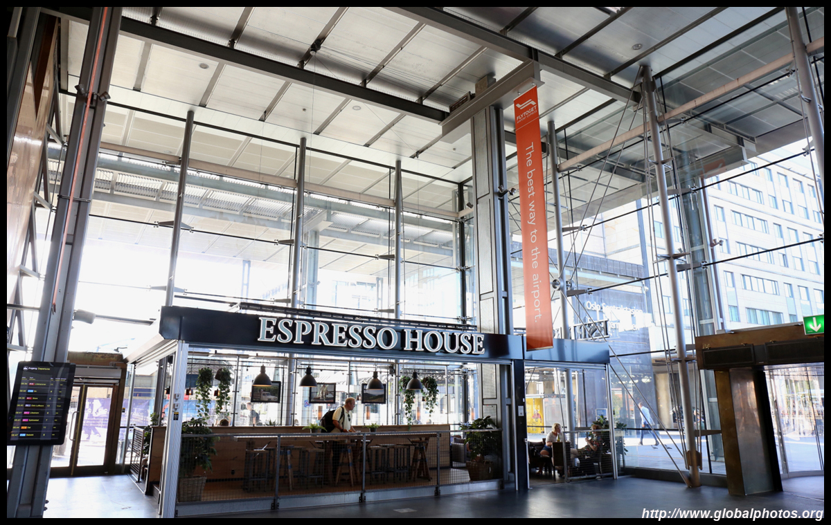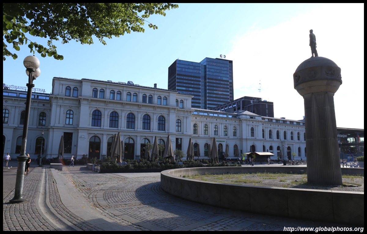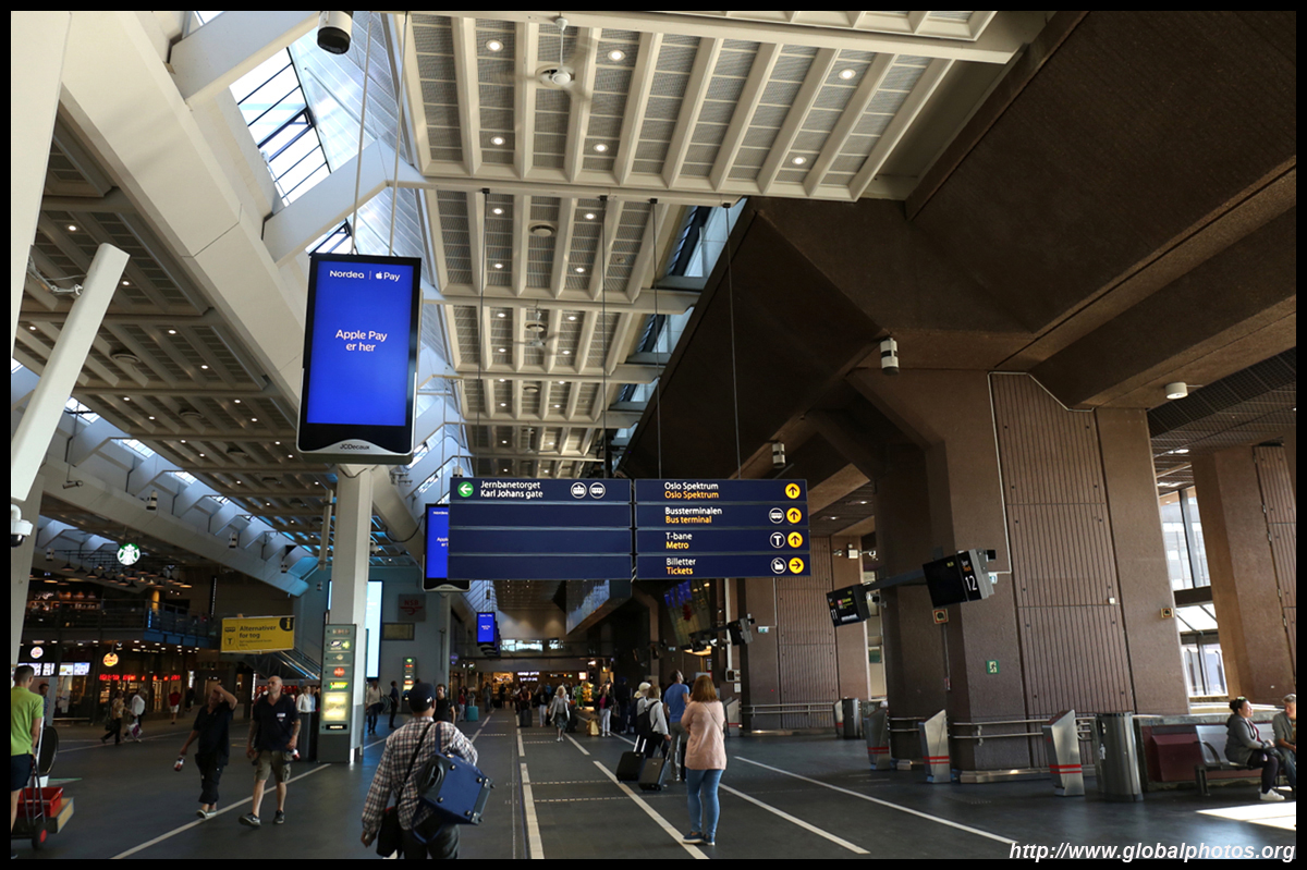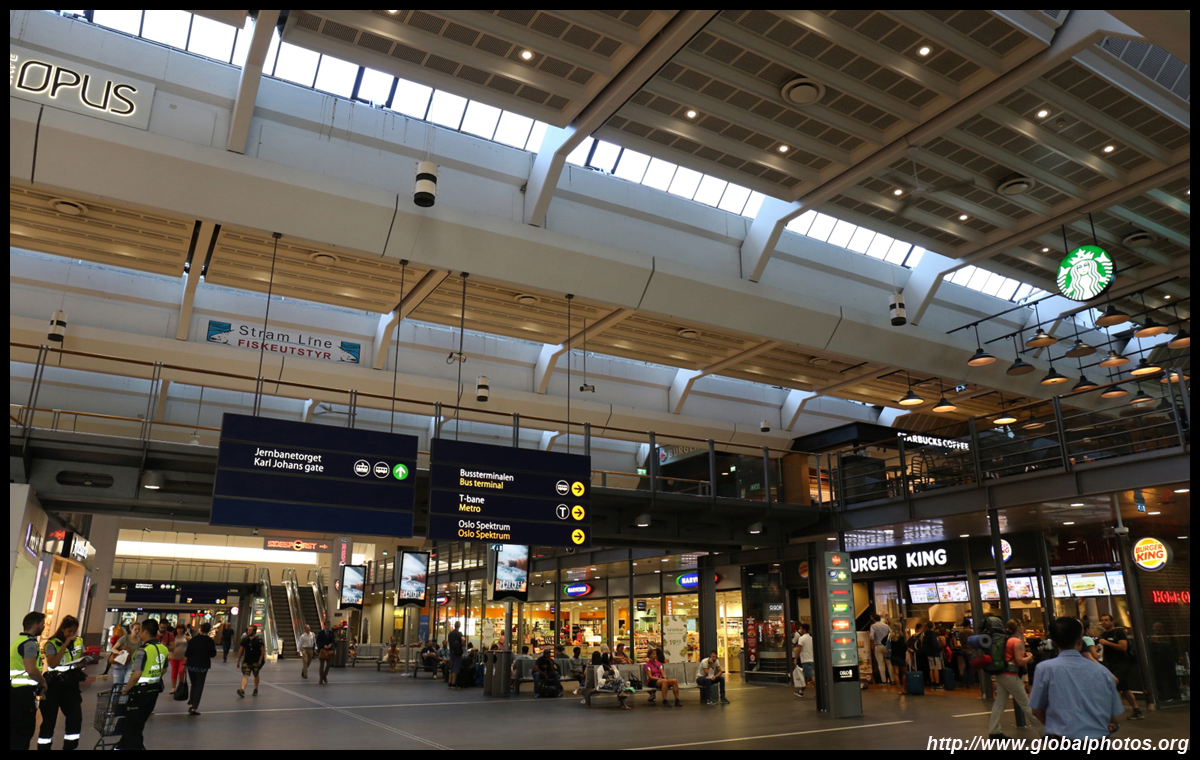 Oslo's main train station has both a historic building and a more modern extension attached to it.