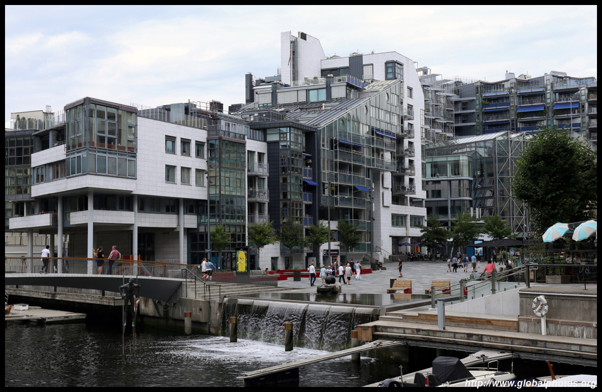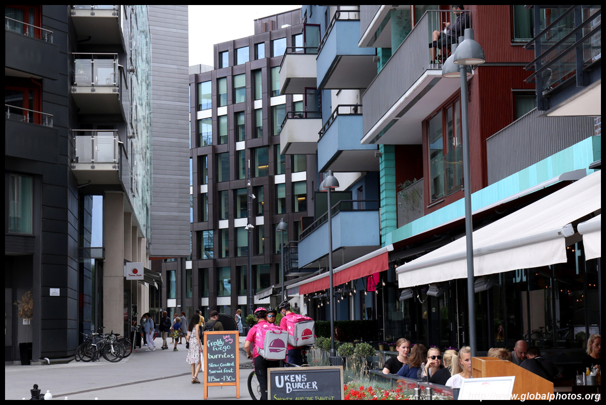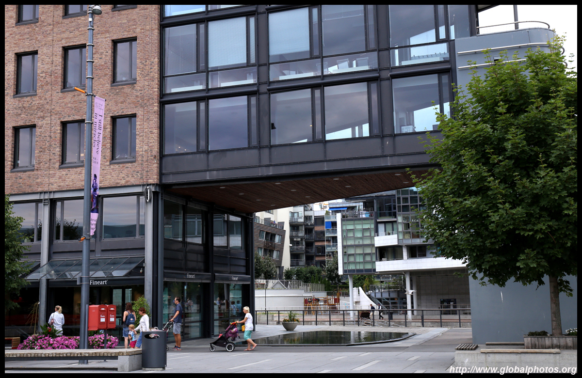 Meaning "thief island", Tjuvholmen is a modern architecture district designed by some 20 architects, similar to Barcode. While it looks mostly residential, there are also many restaurants and offices, as well as lots of waterfront promenades to keep the area lively.