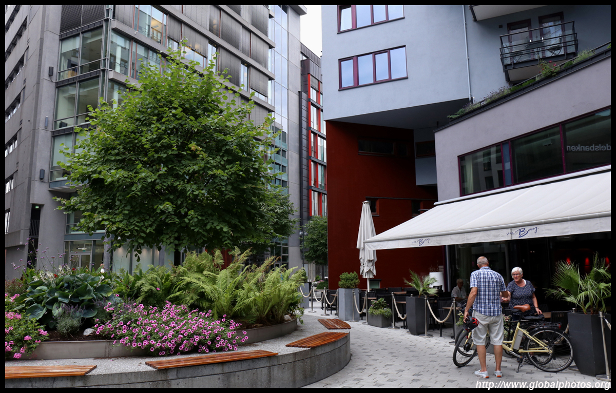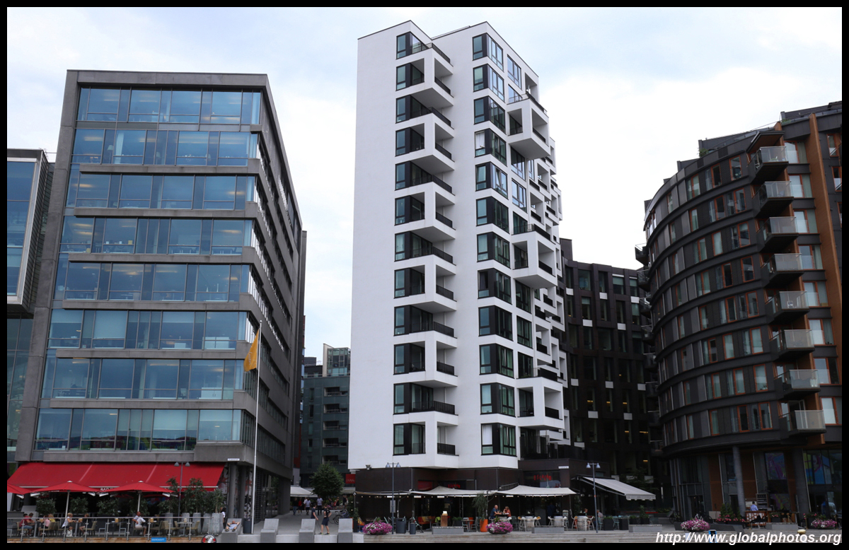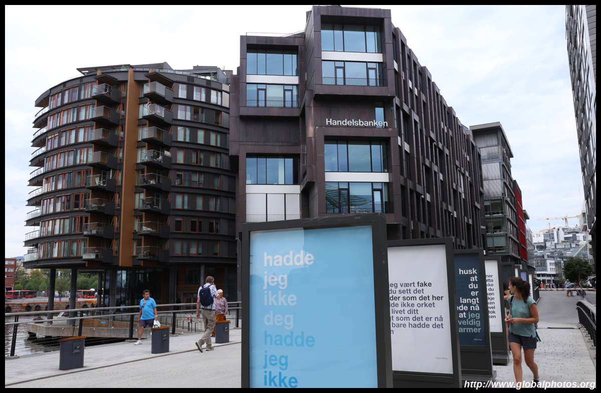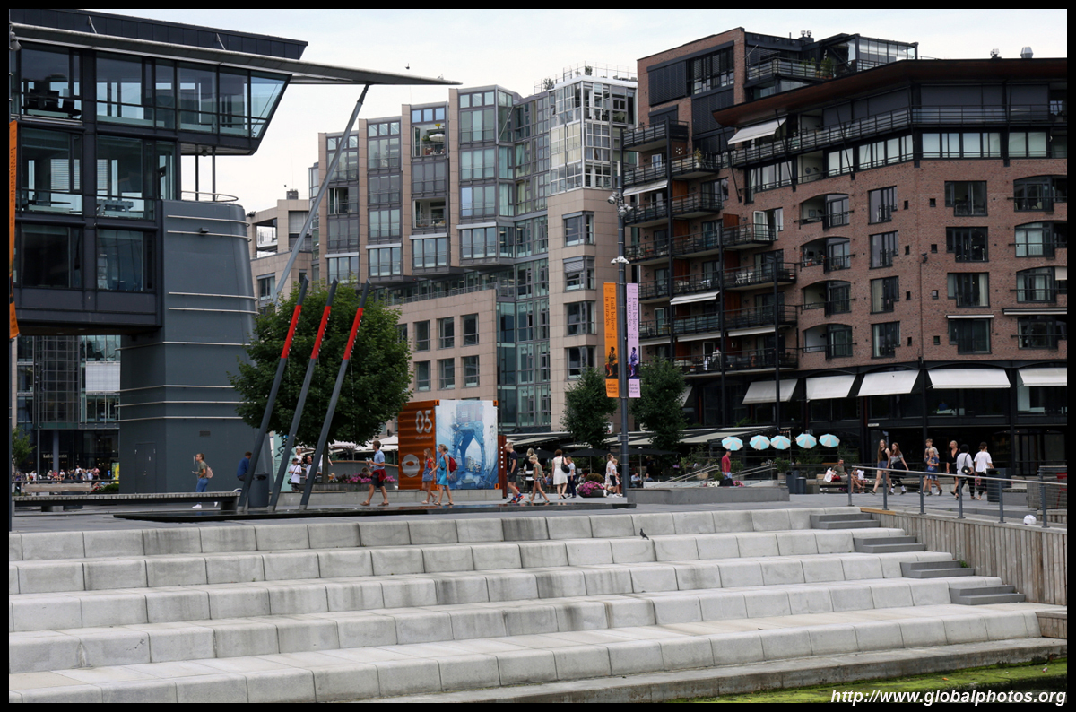 Meaning "thief island", Tjuvholmen is a modern architecture district designed by some 20 architects, similar to Barcode. While it looks mostly residential, there are also many restaurants and offices, as well as lots of waterfront promenades to keep the area lively.