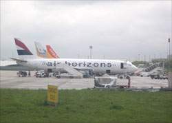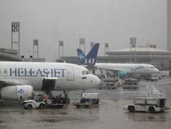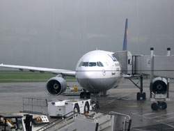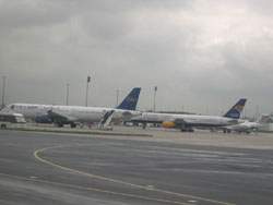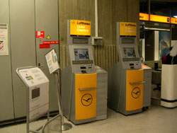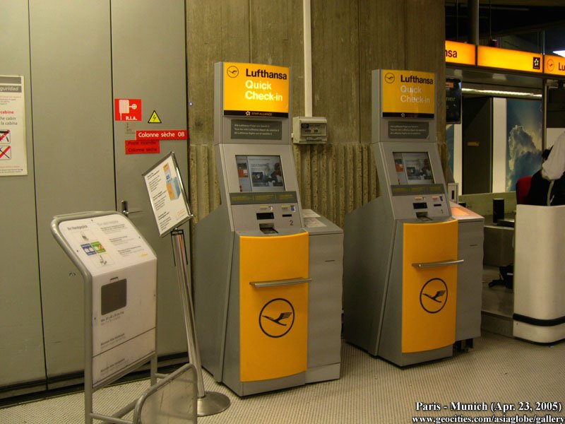 There was a huge lineup at Charles de Gaulle Terminal 1. Although the crowd wasn't big at all, the terminal itself was very small, and it was a Saturday, so a lot of people were heading out of town for the weekend. Most of the check-in area was busy, and I waited for 45 minutes before I could check in. Lufthansa only had about 4 counters for check-in, and they were all open. Unfortunately, since I had a big bag to check in, I couldn't use the self-service to bypass the line. There was a big glob of people, and I didn't know which glob belonged to which. After a bit of stumbling around, I found the right line.