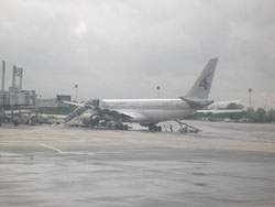 Business class consists of 3 rows at the front of the plane with a small curtain separating the economy class passengers. The seats were the same and there was no on-board entertainment. However, we got a hot kleenex and a lot of food. I was constantly being asked whether I needed more drinks, and the FA kept an eye on all of us business class passengers. |