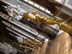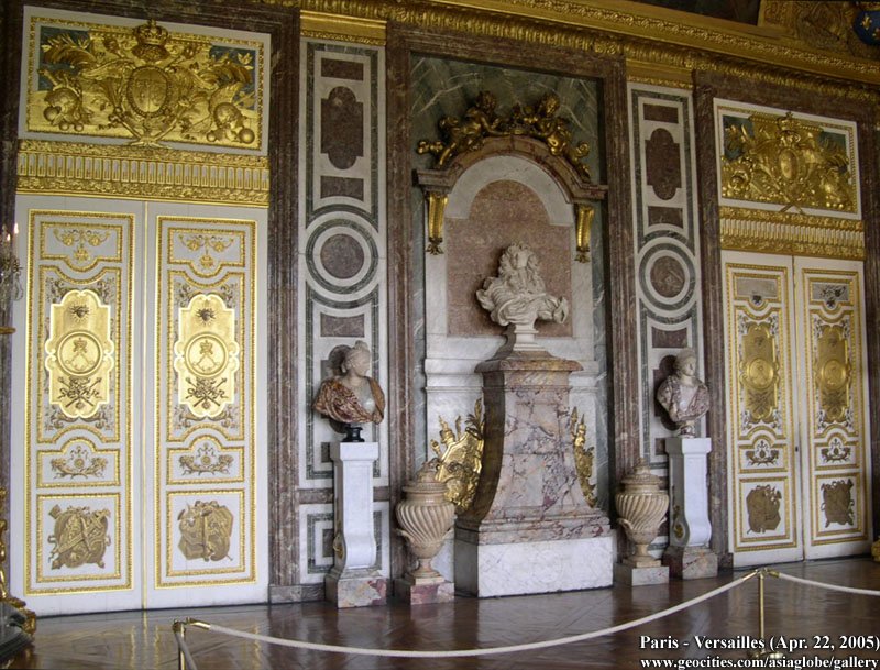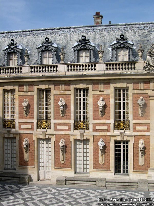 Back in 1623, Louis XIII - father of Louis XIV - built a 'hunting lodge, a little gentleman's chateau' of brick, stone, and slate at Versailles. The king liked it so much that he soon had it enlarged by his 'royal engineer and architect', Philibert Le Roy (this early chateau survives in the buildings that flank the Marble Courtyard). Then from 1661 to 1668 the young Louis XIV, known as the Sun King, had his own architect, Louis Le Vau, embellish the residence. Yet this little house of cards', as the memorialist Duc de Saint-Simon called it, remained too small. Extensions were deemed necessary.
