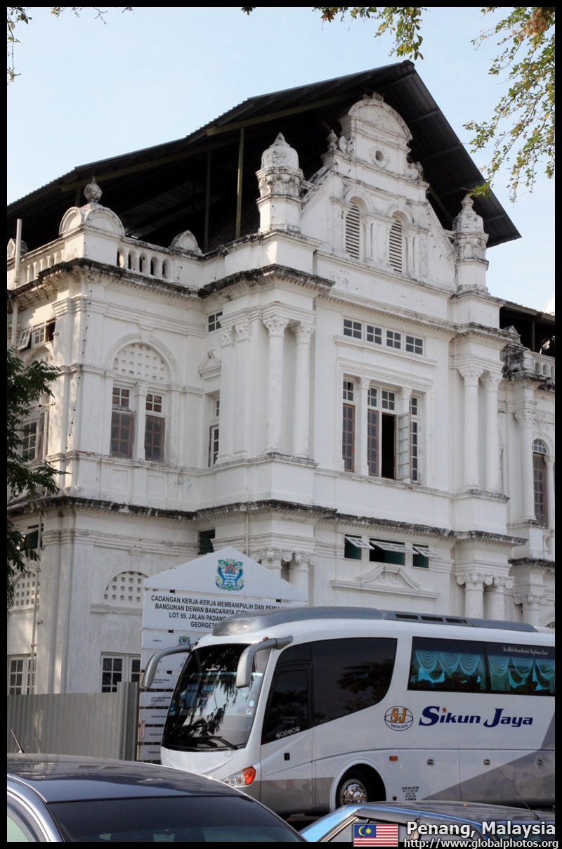 Next door is the City Hall, a neo-Palladian structure completed in 1903. Today, it is used by the Municipal Council of Penang Island.