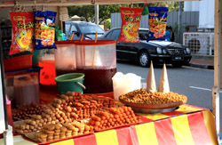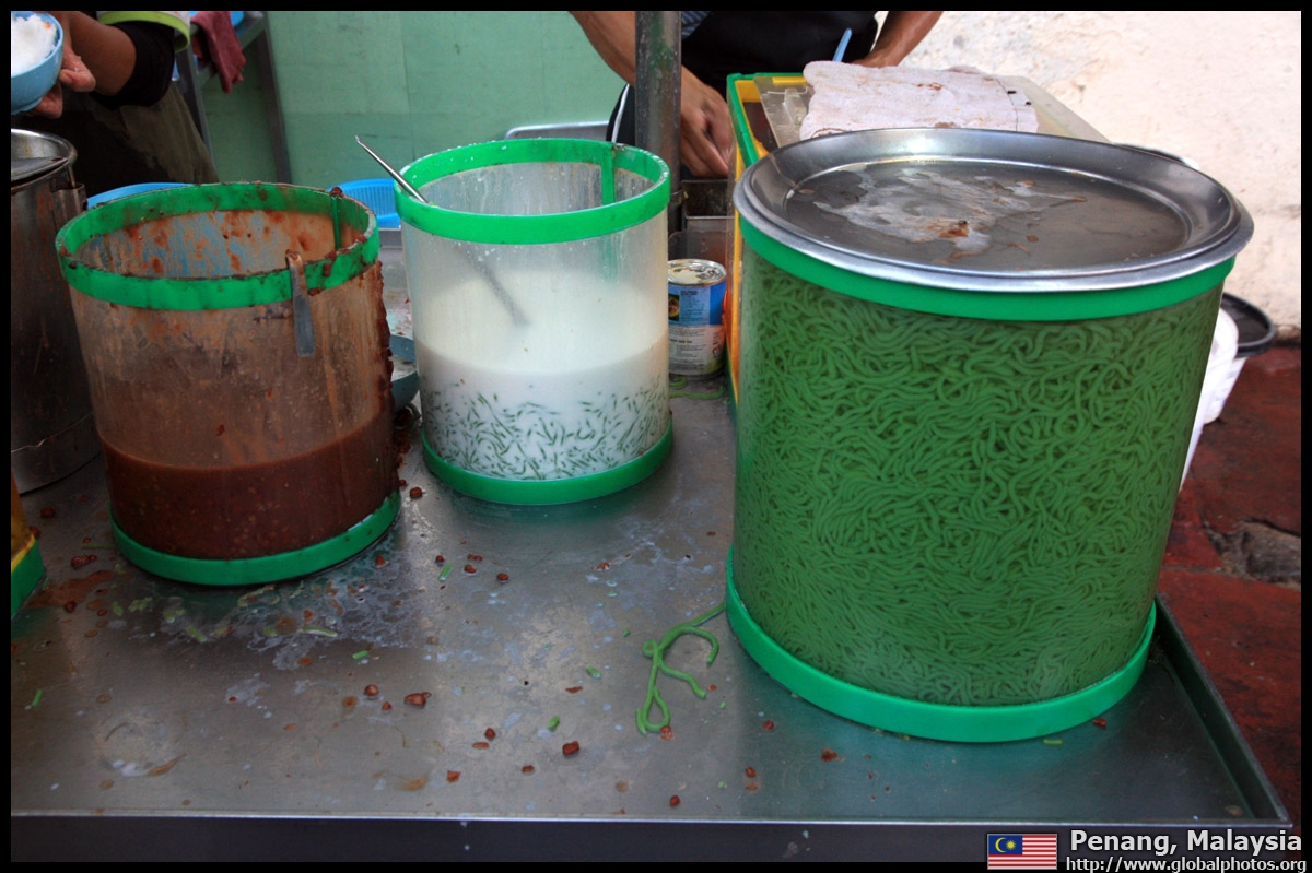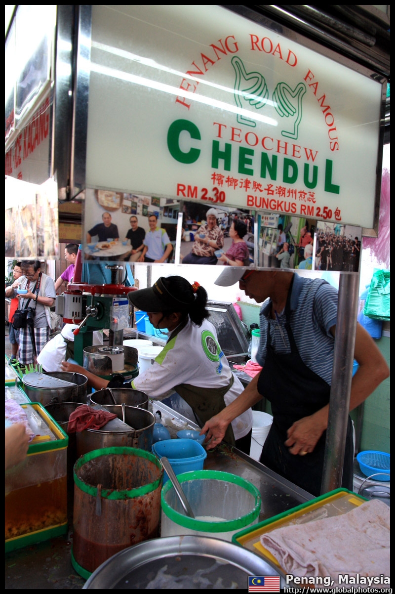 In one of the narrow streets near Komtar, this road-side chendul stall serves traditional Chiu Chow dessert in a rich coconut sauce.