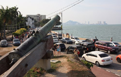 The War Memorial is fenced off from everyone but was intended to commemorate those who defended Penang's harbour from the German navy during World War I.