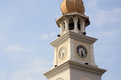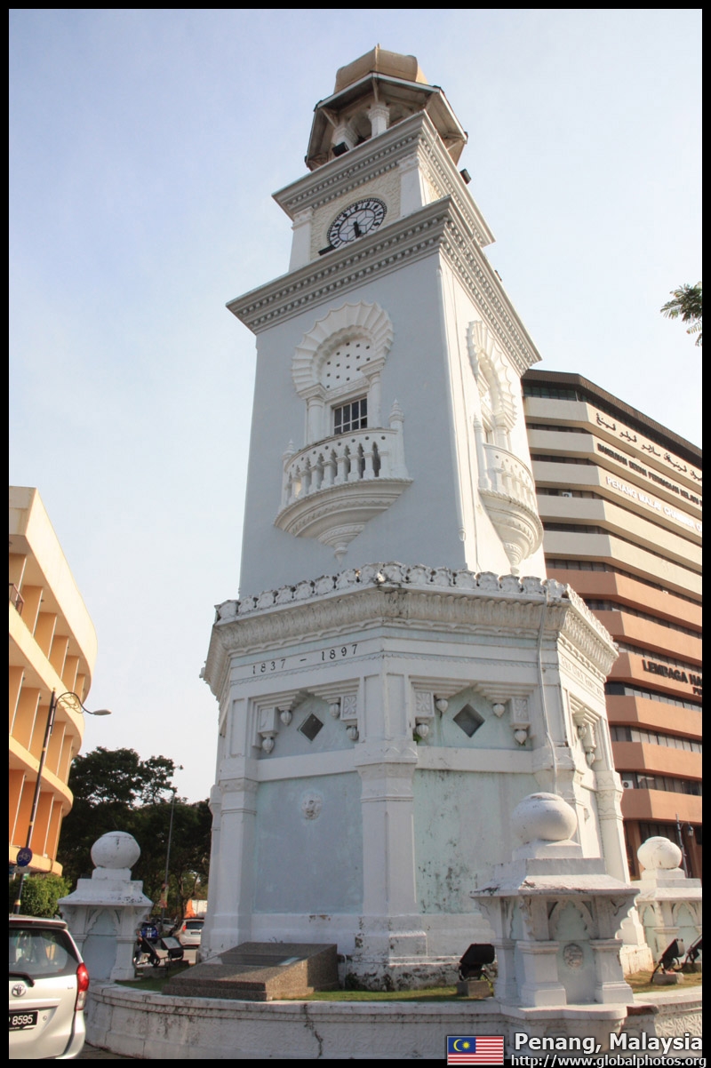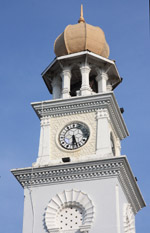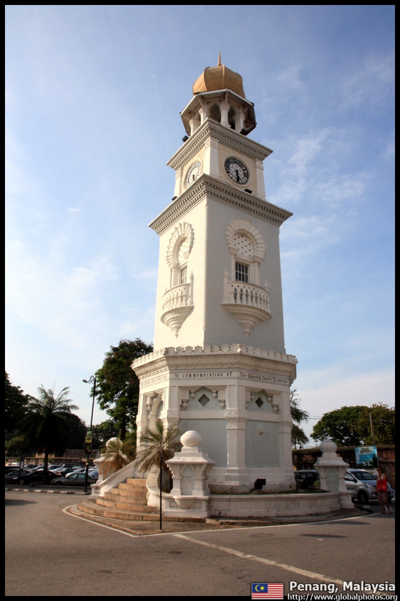 Built in 1897, the Queen Victoria Memorial Clock Tower stands 60 feet high near Fort Cornwallis.