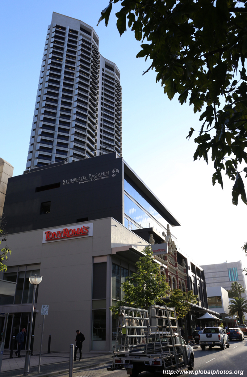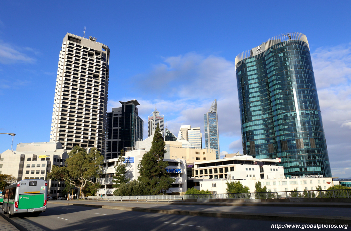 The Hay Street pedestrian promenade is a good place to spot the city's modern skyscrapers set against more historic buildings.