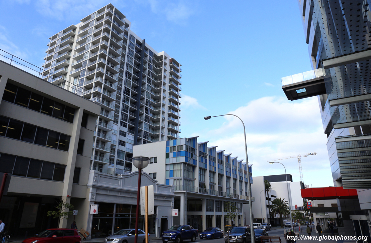 Perth's downtown is not too big and is very walkable with a decent selection of residential buildings that are walkable to the offices. Laid out in a grid pattern, it is also not very dense either.