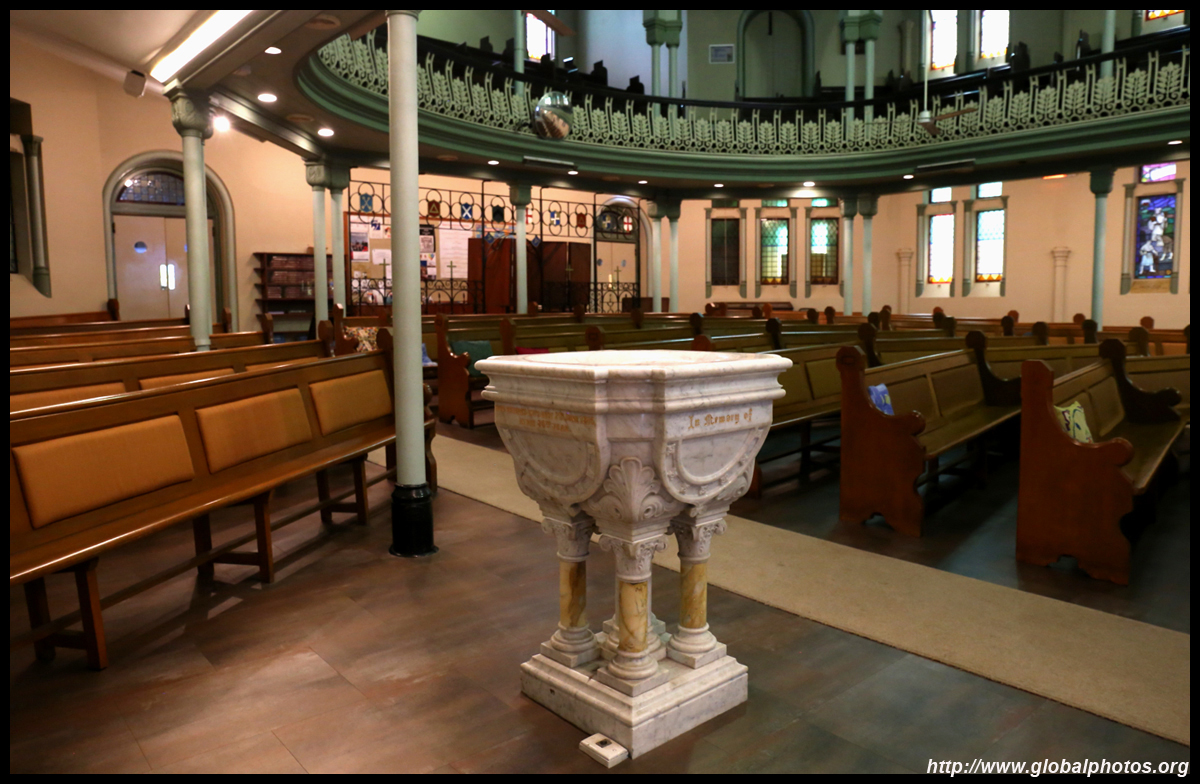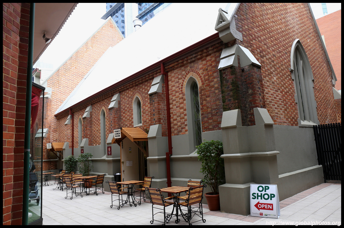 The Romanesque facade Trinity Church is now surrounded by modern buildings. The structure was originally slated for demolition in 1970, but a modified scheme was eventually implemened and the church remains on the site today and an arcade built next door.