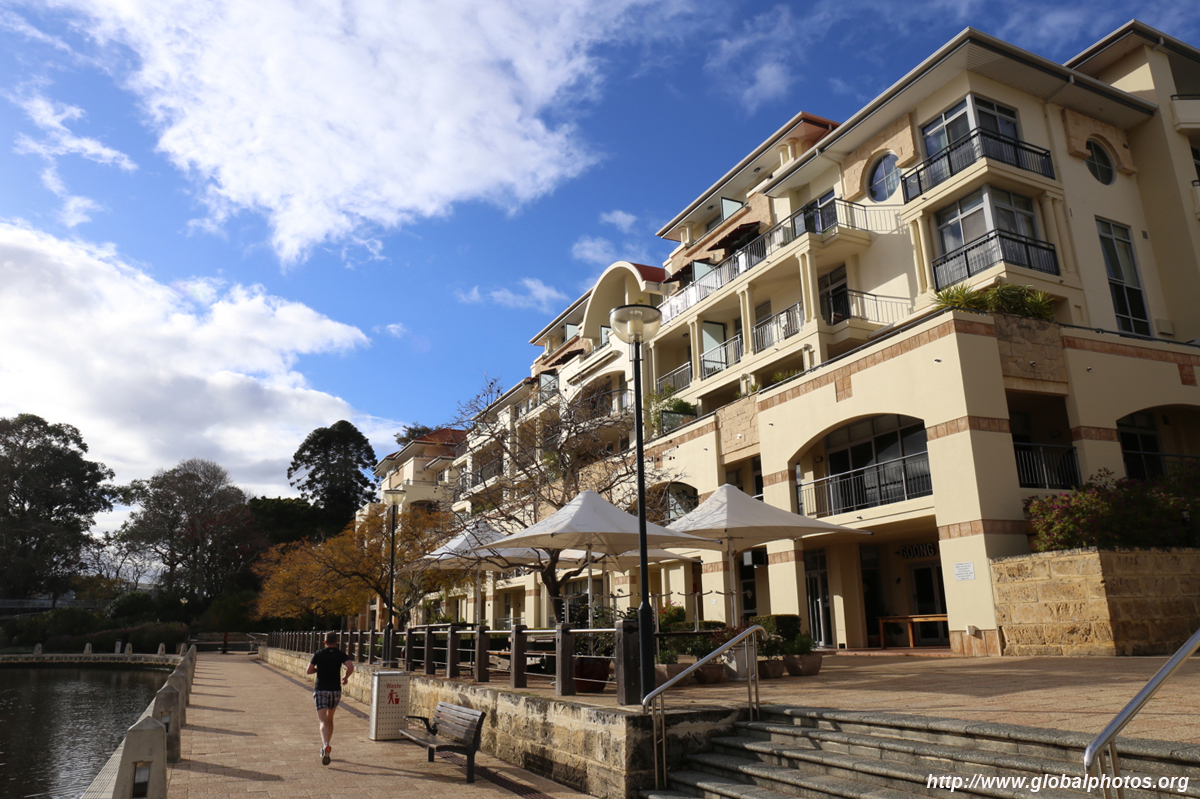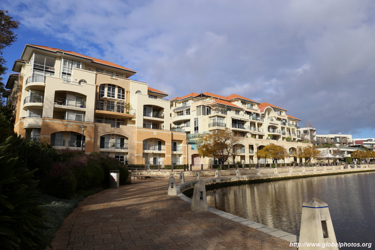 Taking advantage of an inlet from the Swan River, Claisebrook Cove was developed in the 1990s with homes overlooking the water as well as the skyline.