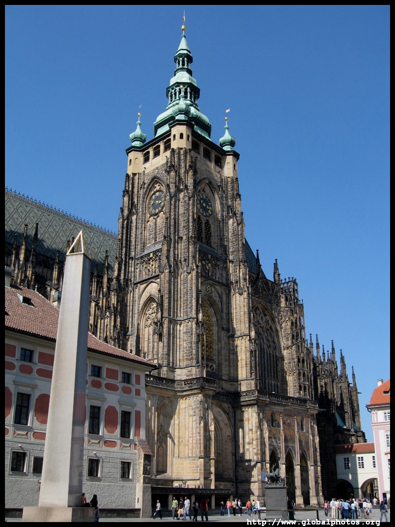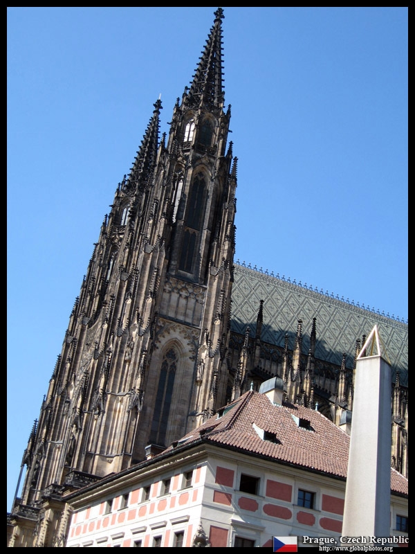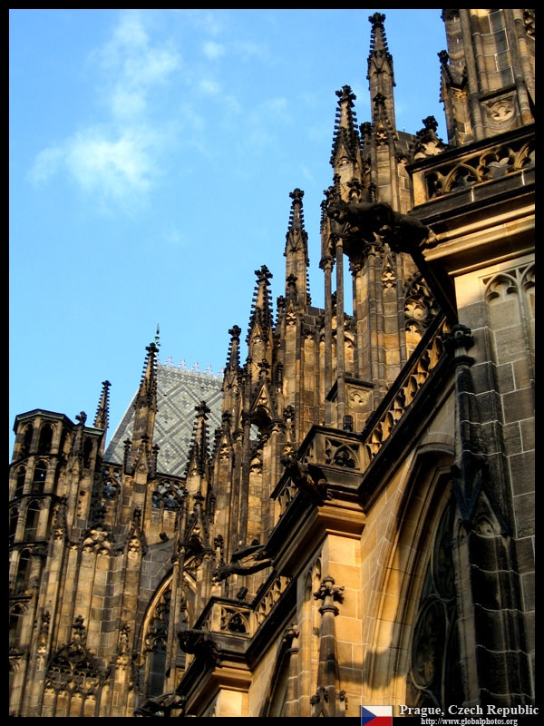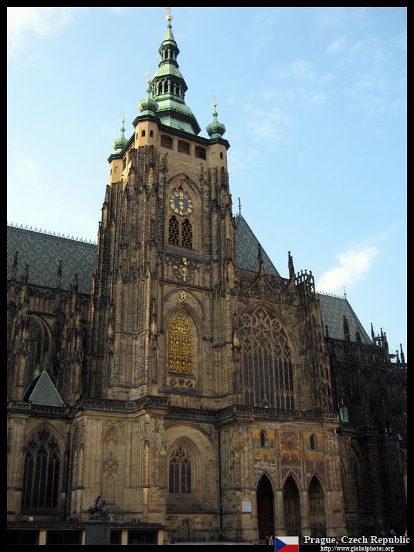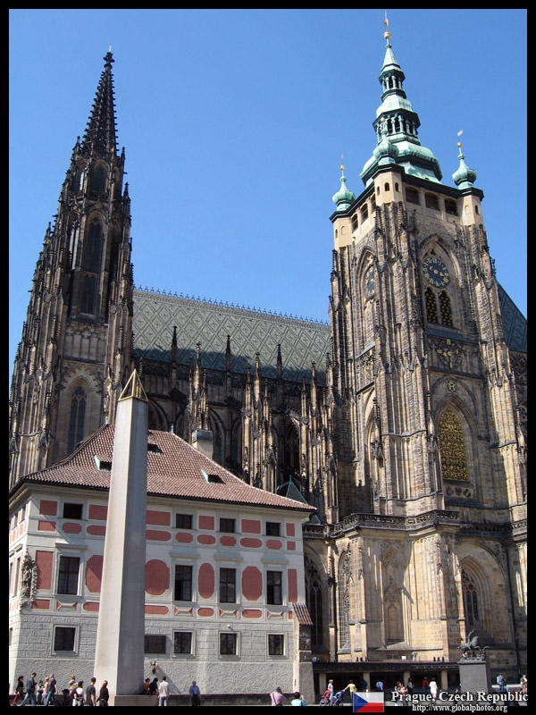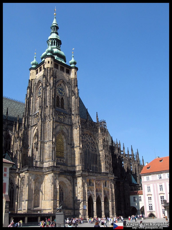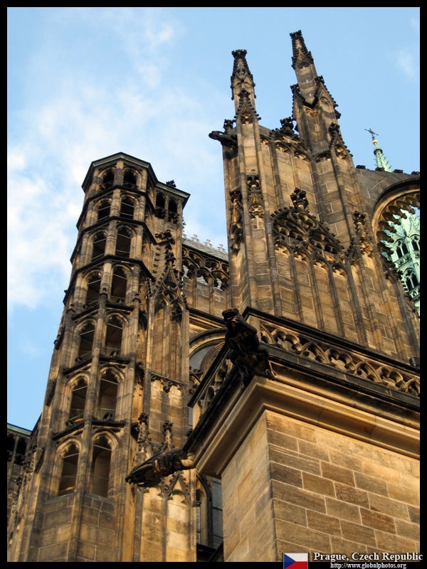 St. Vitus Cathedral is a Gothic construction dating from the 14th century. However, it sat through many centuries unfinished and it was only consecrated in 1929.