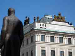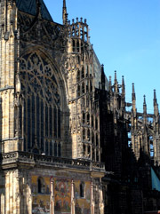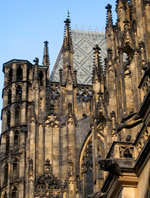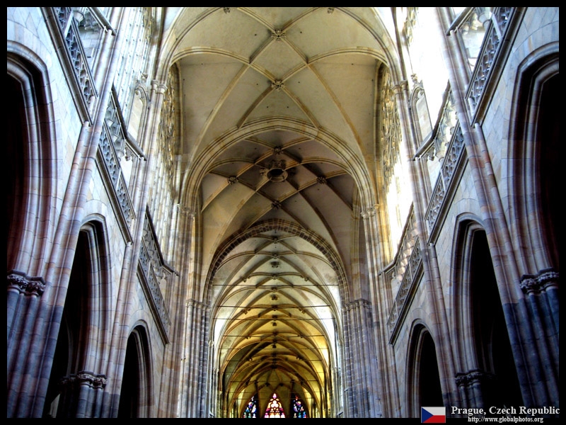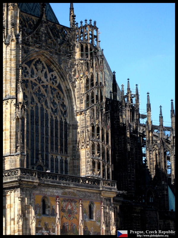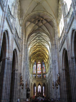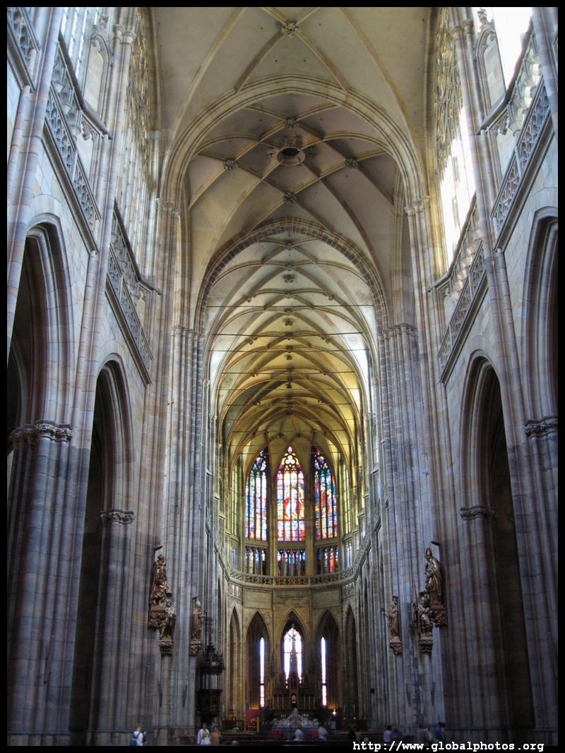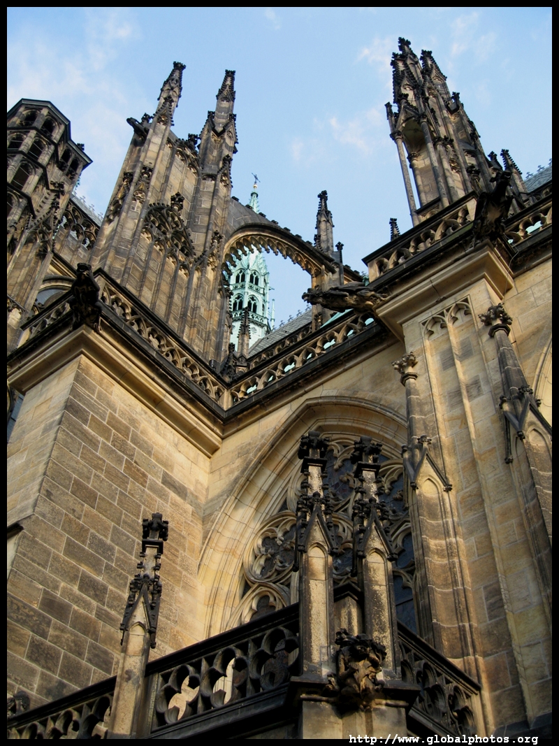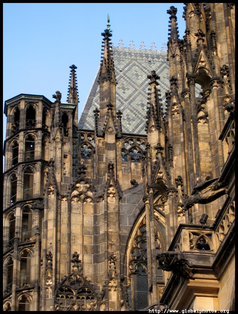 St. Vitus Cathedral is a Gothic construction dating from the 14th century. However, it sat through many centuries unfinished and it was only consecrated in 1929.