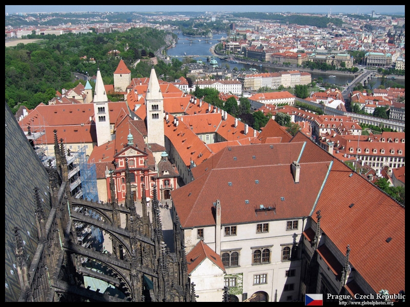 The observation area atop the cathedral offered one of the best views of Prague. So many bright roofs!