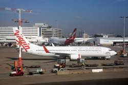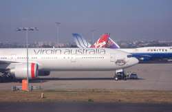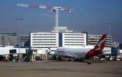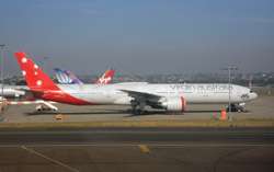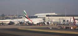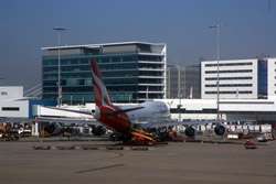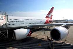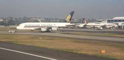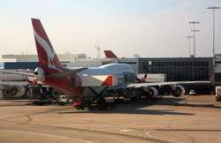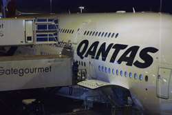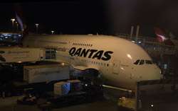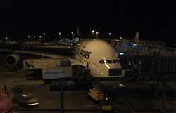 The Business Class check-in counters were not busy for this red-eye flight. Once past security and immigration, I caught sight of this large jet being prepared for tonight's service.