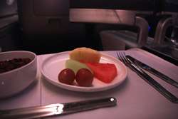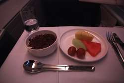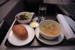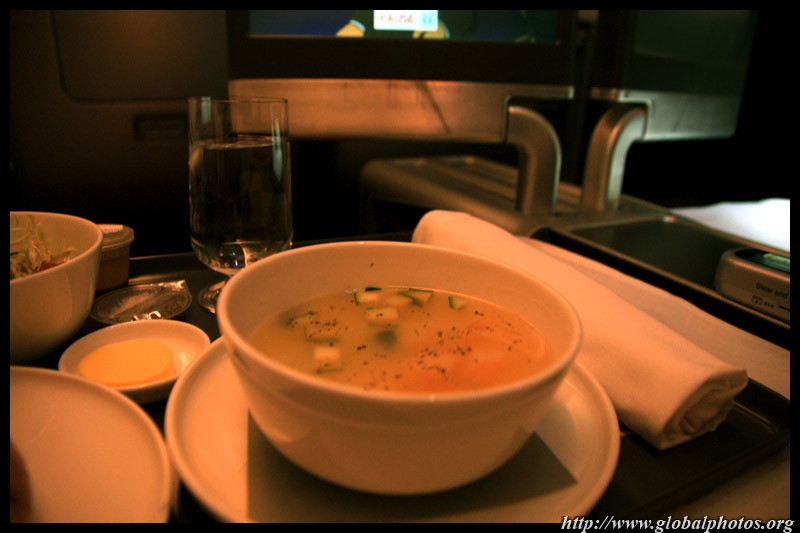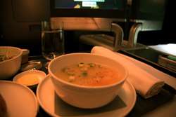 Qantas' Business Class meal service had a lot more choice than Cathay Pacific. I had soup on the plane for the first time with them in 2008, and I didn't hesitate to try it again this time.