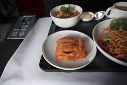 Breakfast was served prior to landing. The portions were very generous. I particularly liked the Chinese option - with congee, dim sum, and noodles. The noodles didn't taste good, but the rest of the meal filled me up quite well.
