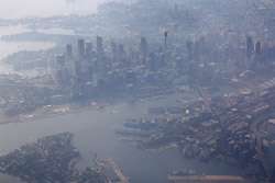 The skies greyed as we descended into Sydney. There wouldn't be a blue sky and skyline view today.