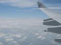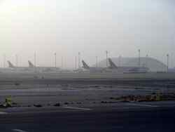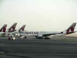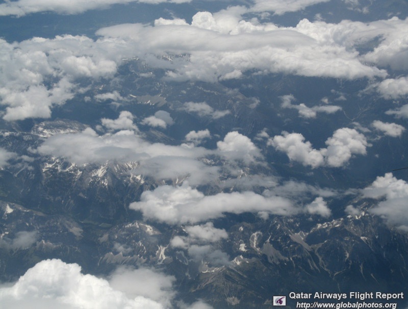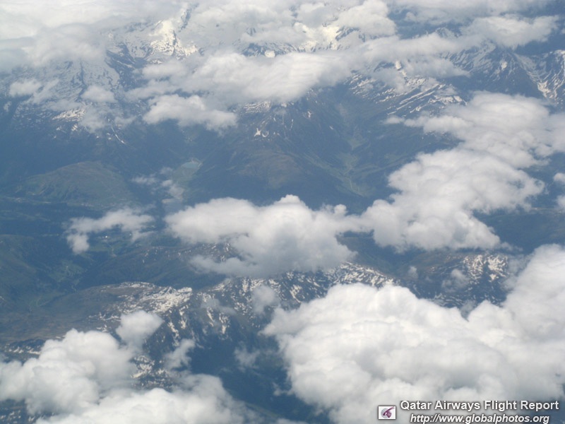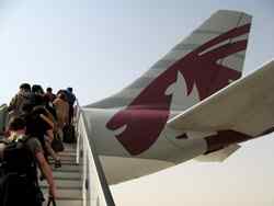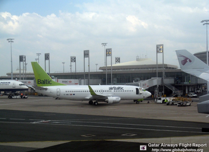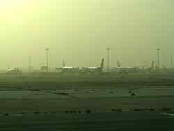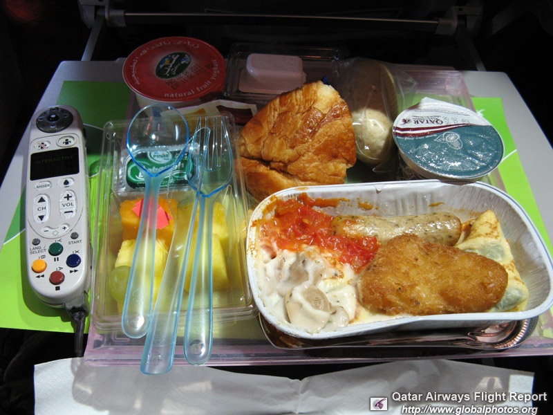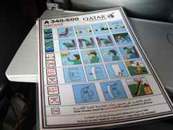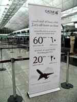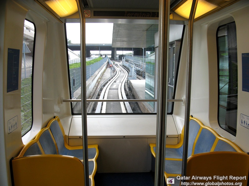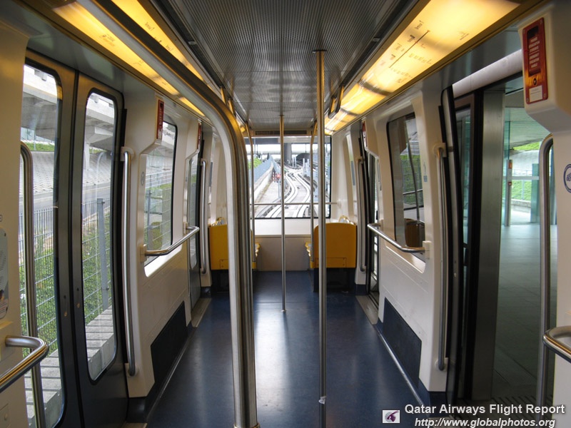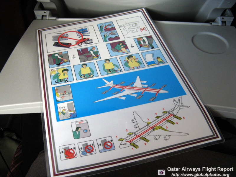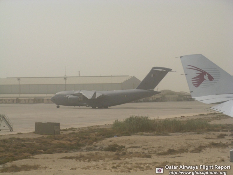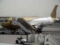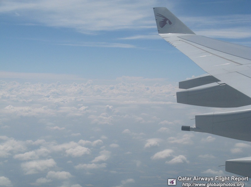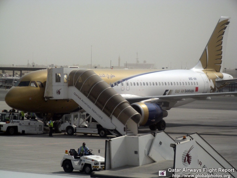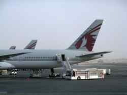 The red-eye flight was full with many seats taken by packaged tours. Upon arrival in Doha in the early morning, passengers had to take to the stairs to board buses for the terminal.