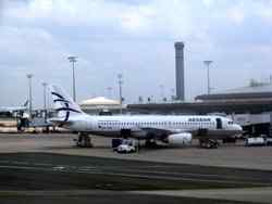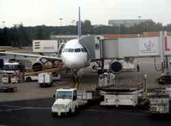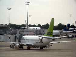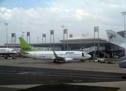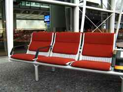 Boarding starts a lot earlier than at other airport since all passengers must take the bus to the tarmac. The process usually begins an hour before departure time. Once past the ticket check, passengers descend downstairs to board the buses.