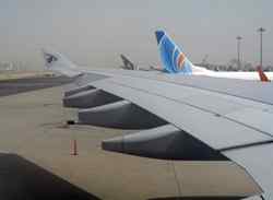 I purposedly chose a left window seat hoping to see Doha's skyline. I was not disappointed.