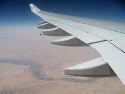 It was sunny but dusty in the Middle East as expected. It wasn't a full flight, and there were plenty of empty seats here and there for the 6-hour flight to Paris.