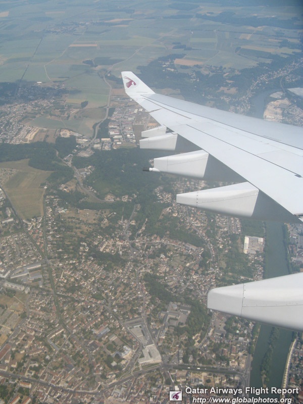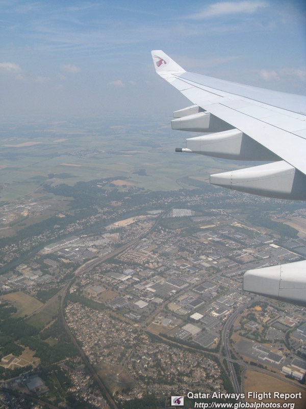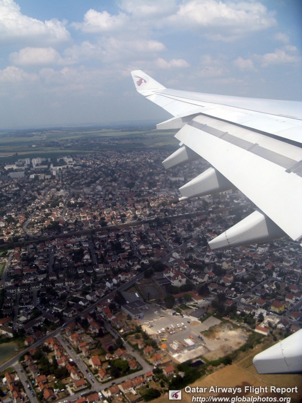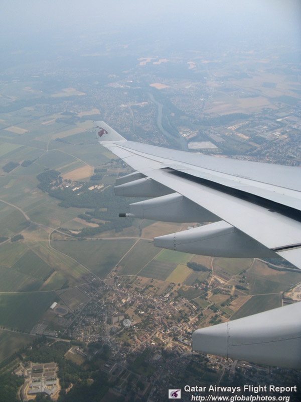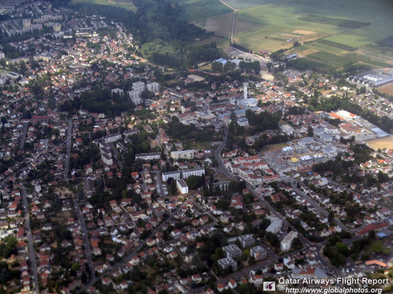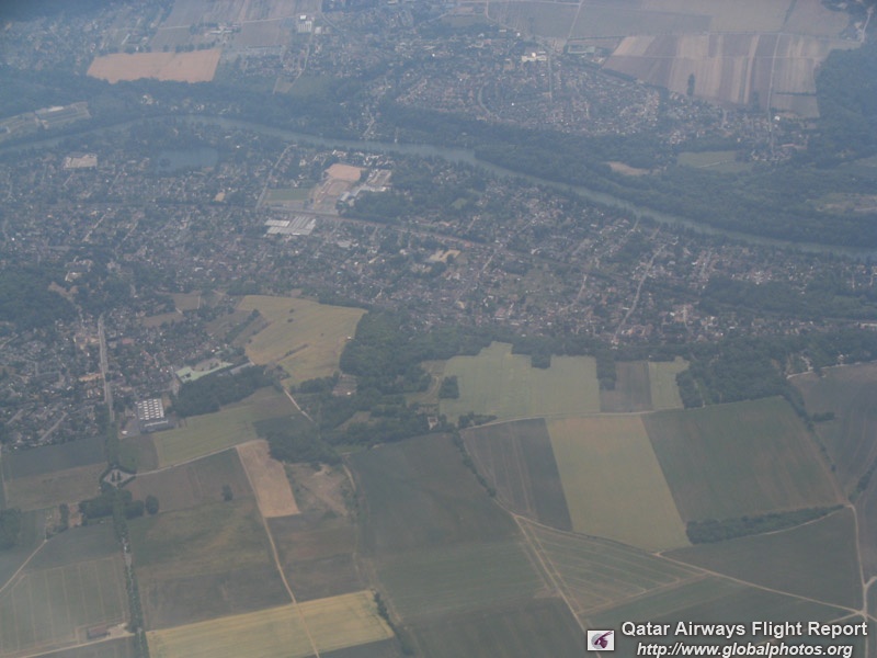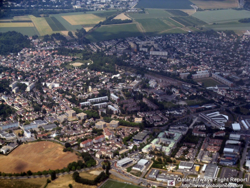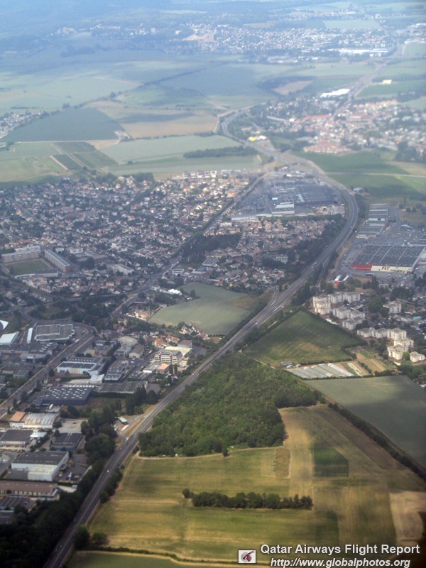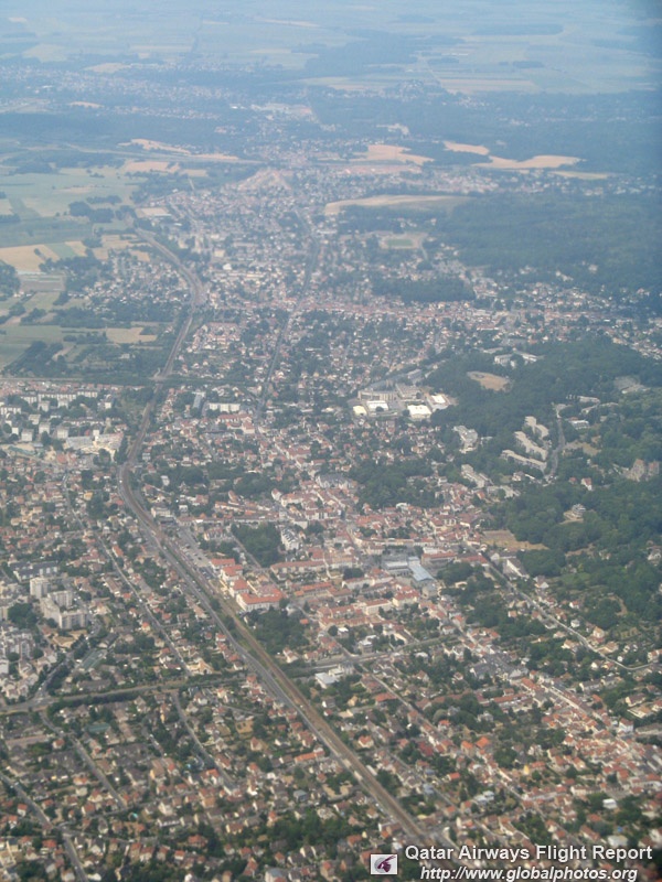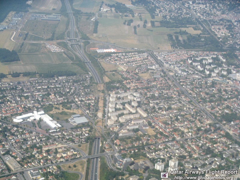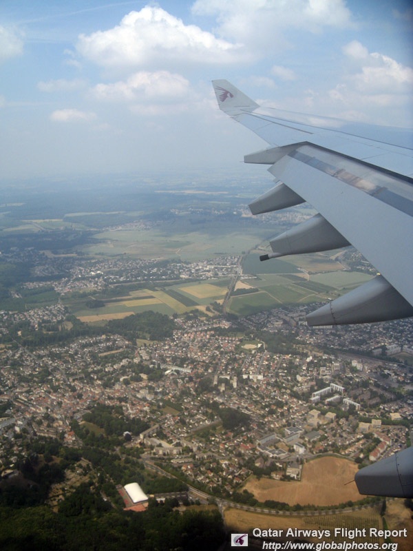 It was a long approach into Charles de Gaulle which involved reversing the plane's direction through a series of turns. As I was sitting on the left and clouds were rolling in, Paris aerials were out of my reach. However, the towns en route looked decent enough. Surprisingly, despite the relatively clear weather, the approach was quite bumpy.