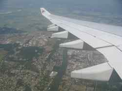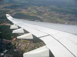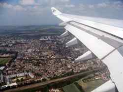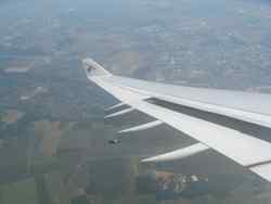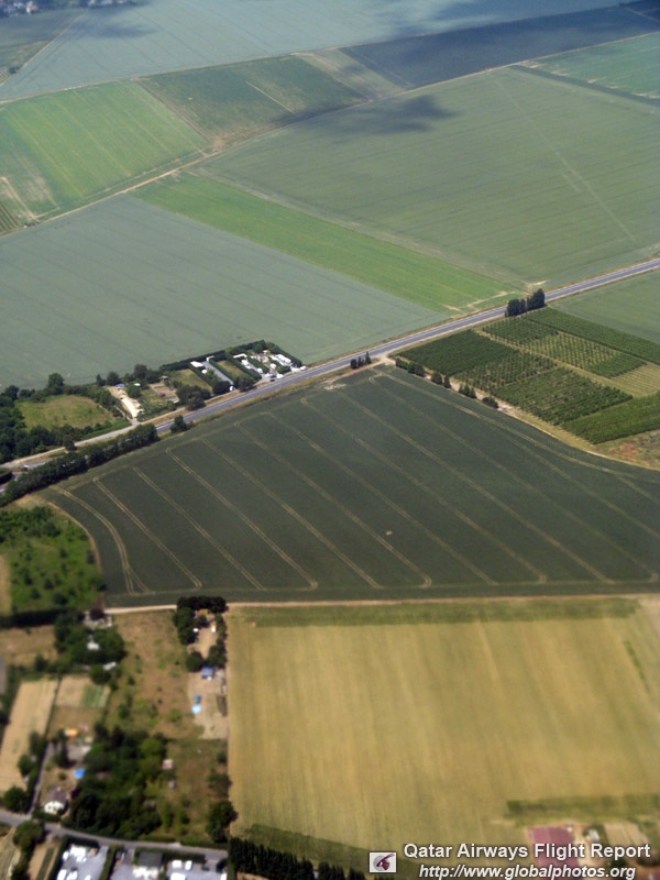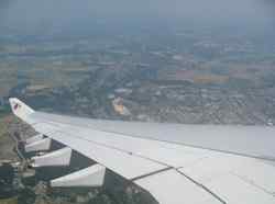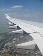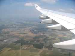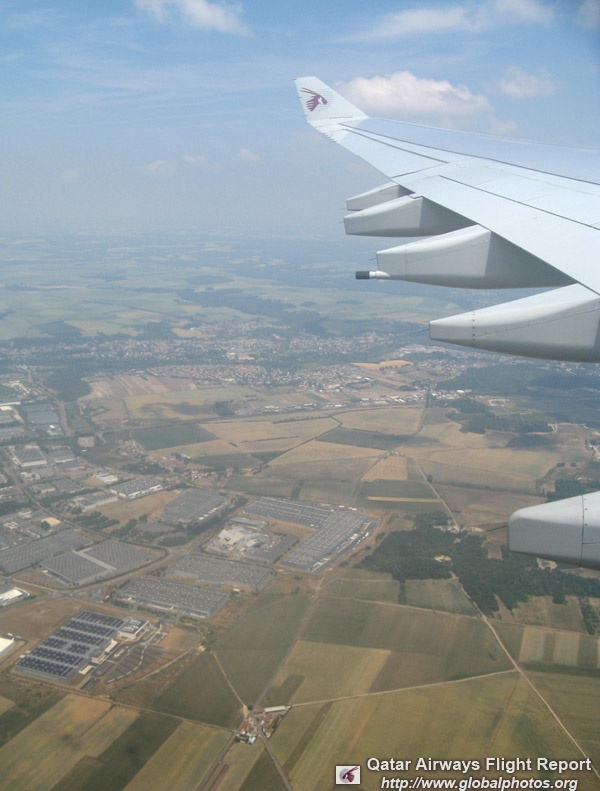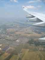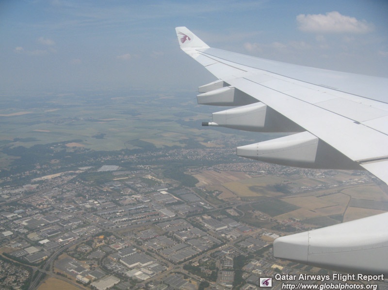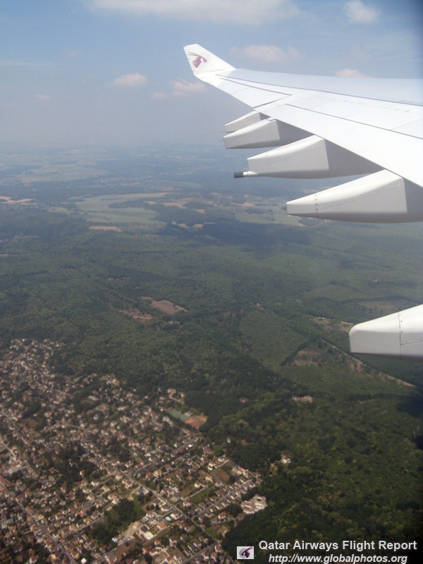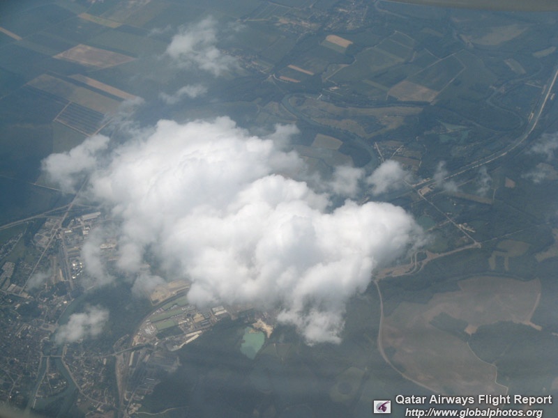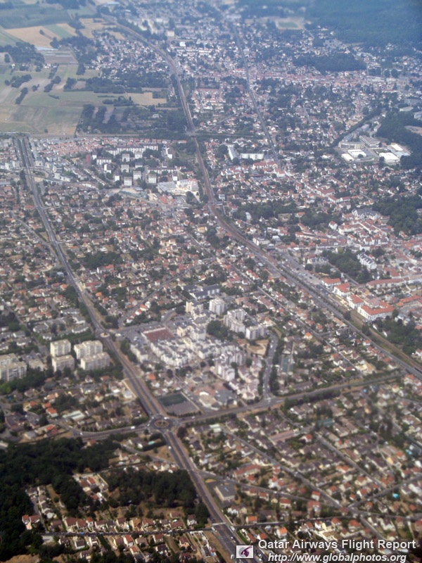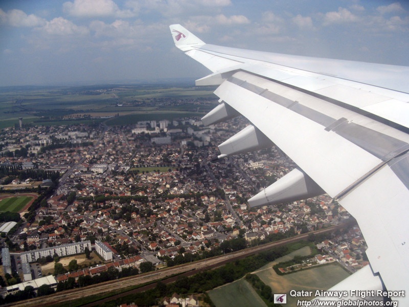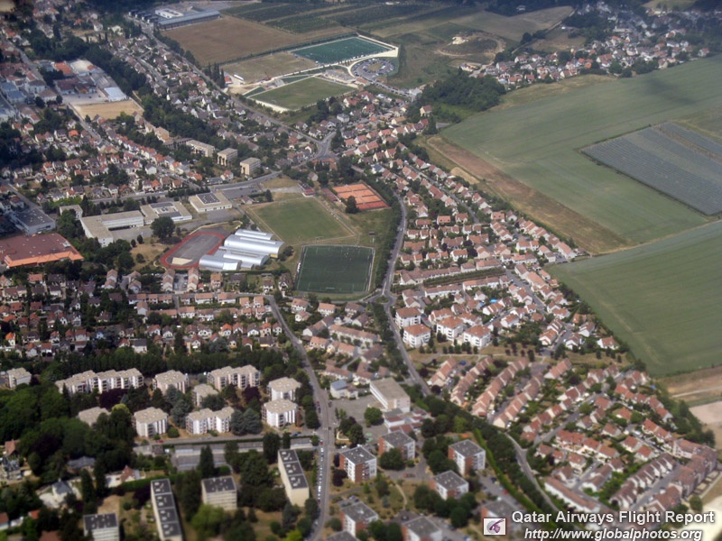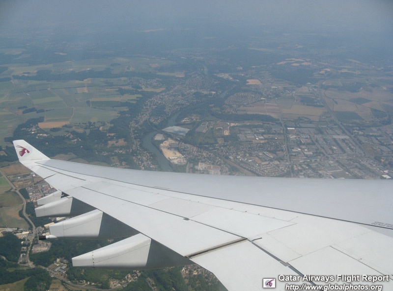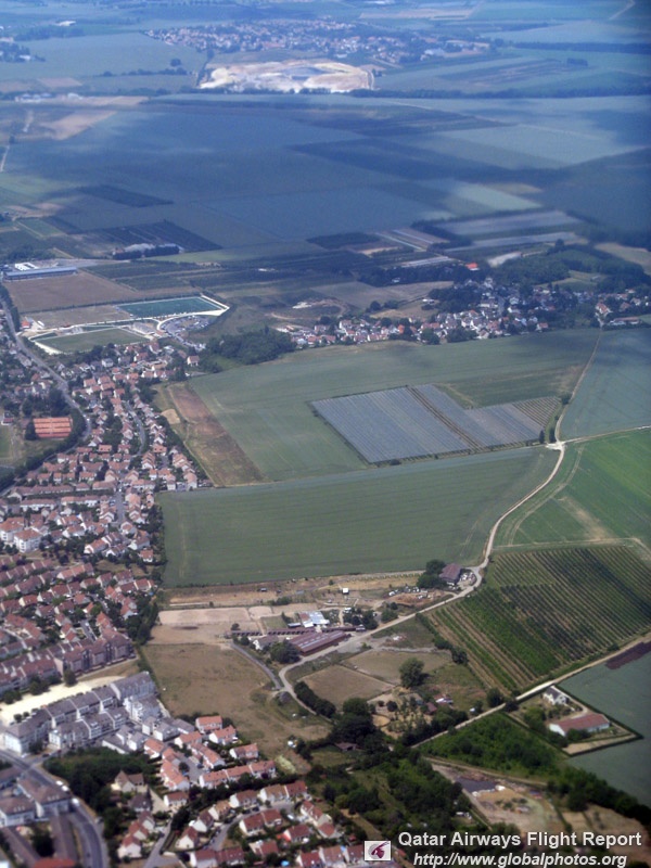 It was a long approach into Charles de Gaulle which involved reversing the plane's direction through a series of turns. As I was sitting on the left and clouds were rolling in, Paris aerials were out of my reach. However, the towns en route looked decent enough. Surprisingly, despite the relatively clear weather, the approach was quite bumpy.