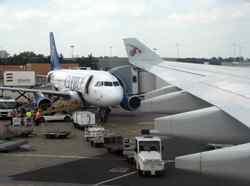 We parked at an old facility but it seemed weird that the plane could end up in this position. I suspected it was a satellite terminal and the circular structure beyond was where I'd find the exit.