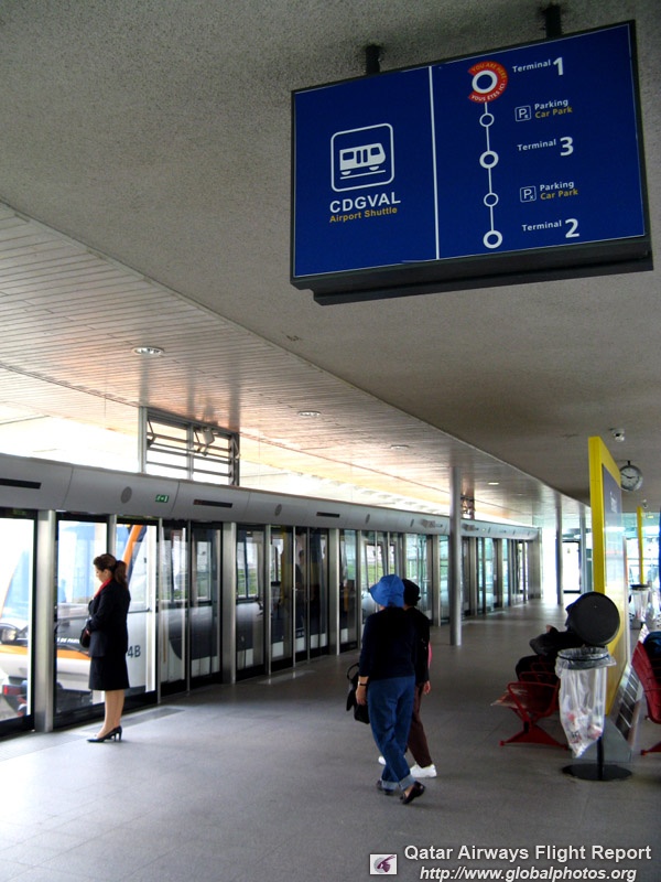 There was an immigration check by two personnel on disembarkation, so the passengers were backed up for a while as the line slowly trickled. Then everyone descended into a tunnel for the ride into the main terminal building, where there was a formal immigration counter. The whole process was inadequately-resourced, as the line for international passports stretched quite far back, and even the EU counters saw long lines. It was quite some time before I could reach the inter-terminal train to get to the RER station.