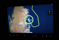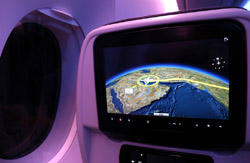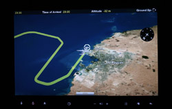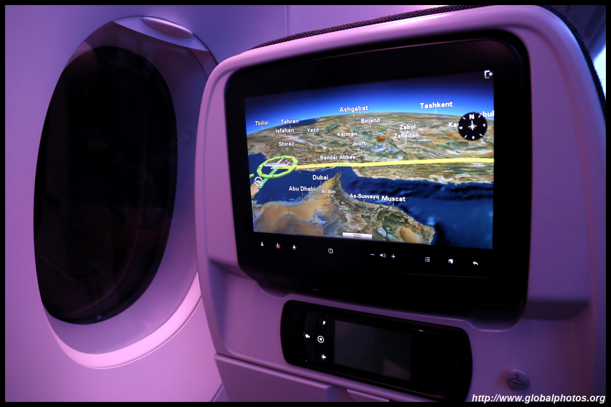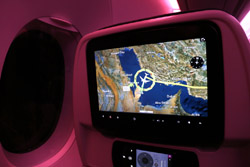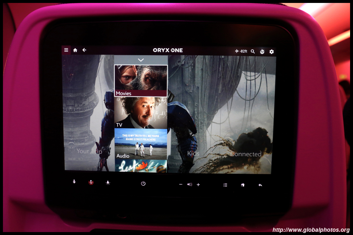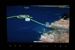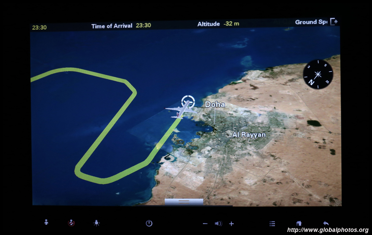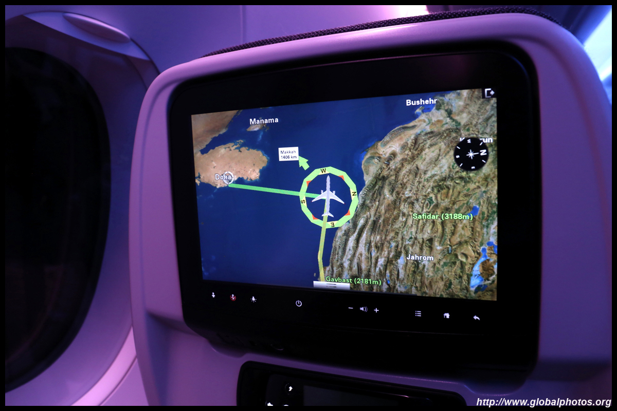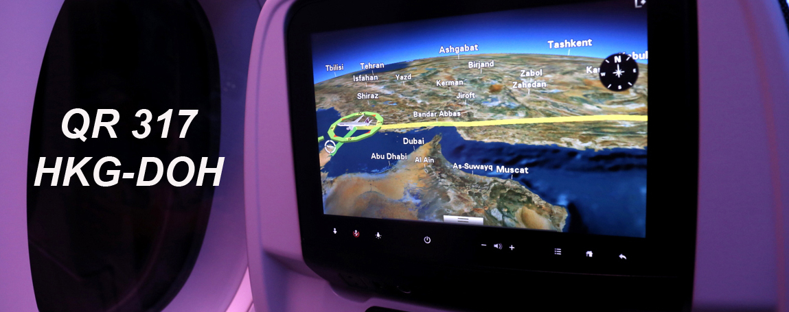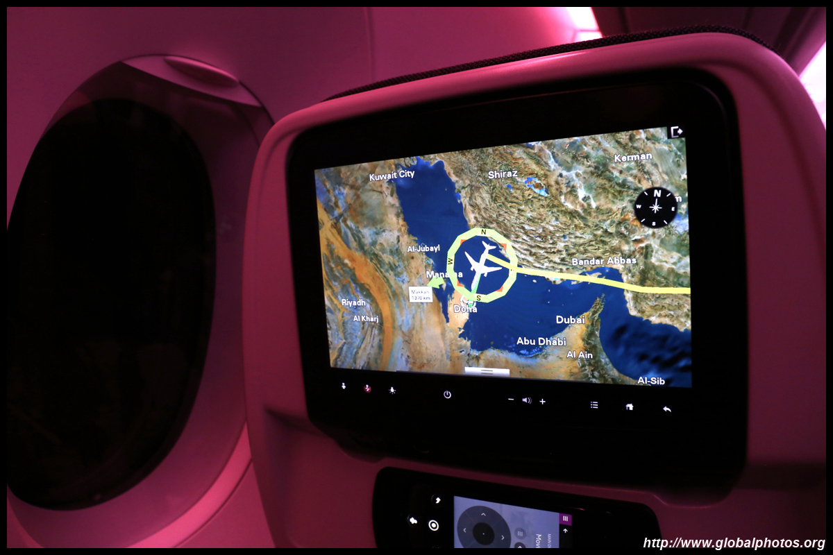 Each passenger received 10 MB / 15 minutes of free wifi for the flight. Just enable wifi on your mobile and connect to the OnAir service, then log in. However, this service was not available for much of the flight due to certain country restrictions. Nevertheless, it was a great service enhancement ... attempt. As a sign of regional tensions, the lights along the UAE coast were always in a distance and we flew over Iran before making a sharp turn south towards Qatar.