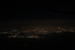 We looped around for landing, which gave me a nice overview of the bright city even in the late night. We landed not too far behind schedule at around 11:30pm, which would mean I would miss the last bus into the city.