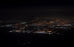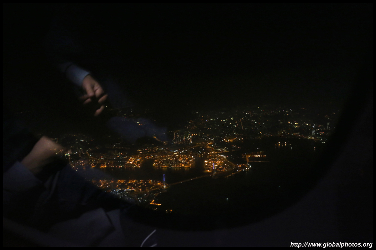 We roared into the night sky for the 8.5 hour flight to Doha. I got some nice views of the skyline upon departure.