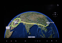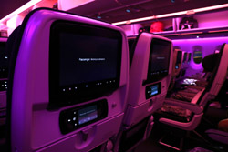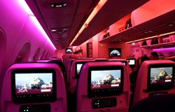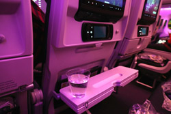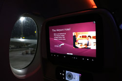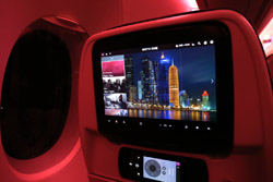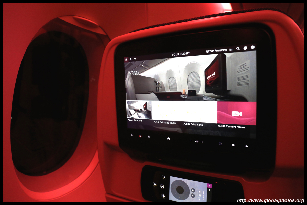 Satisfied with my dinner, I explored the IFE, which was a responsive touch-screen complemented by a nice remote control. The A350's interior looked very new and the seat was upholstered in a good type of fabric that could be easily cleaned but soft enough. The red colours and mood lighting was soothing as well. However, I had noticed it was quite dry at cruise of 40,000 feet, a marked difference from the 787. We had bouts of turbulence throughout the flight. The seat belt sign was on during a long section over India. By then, I was happily dozing across my row, and being laid down, it insulated me a bit from the discomfort. As we neared the Gulf, a second full meal was served, again with trays carried individually and not from carts. I would have been satisfied with a simple sandwich but I suppose they were adjusting us to a second dinner in the Qatar time zone.