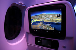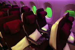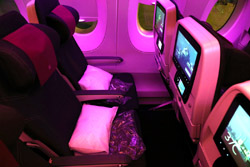 The Business Class seat is a comfortable lie-flat product and not too far from the window to still enjoy views.