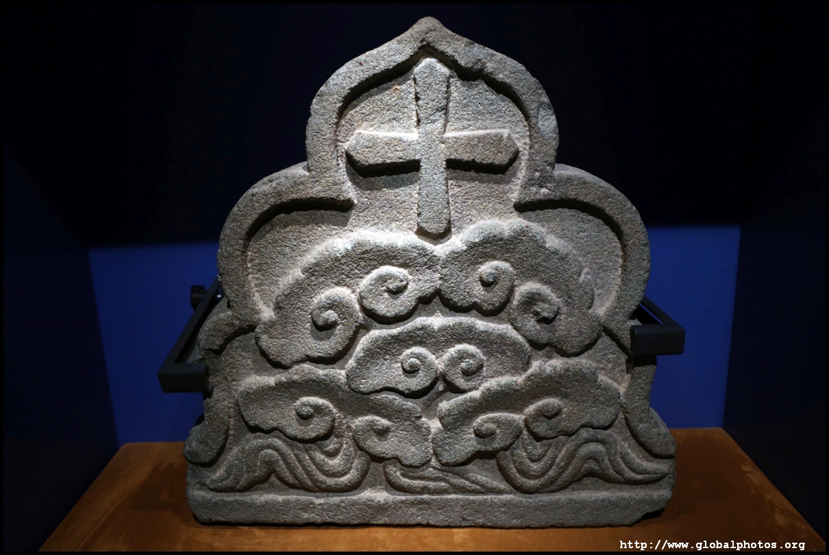 This Gothic arched tombstone with winged patterns is also from the Yuan Dynasty.