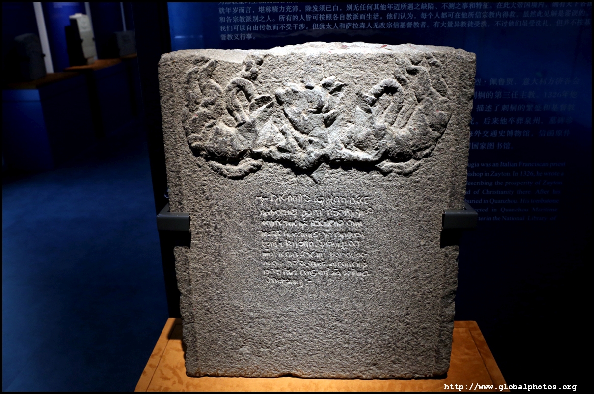 Quanzhou played a key role on China's maritime Silk Road. With booming foreign trade, merchants from many parts of the world came to live in the city. These various cultures and religions were tolerated and you can see relics from the era in this air-conditioned museum. I needed a cooling break.Quanzhou was referred to in ancient times as Zayton by Arab traders. It was the country's greatest port during the Song and Yuan dynasties between the 10th and 14th centuries, when foreigners such as Marco Polo and Ibn Battuta came and wrote impressive descriptions of the harbour and markets. This exhibition shows Christian and Hindu relics, such as tombstones from the Yuan Dynasty. During that period, there were at least 3 Catholic churches and a Nestorian monastery here.