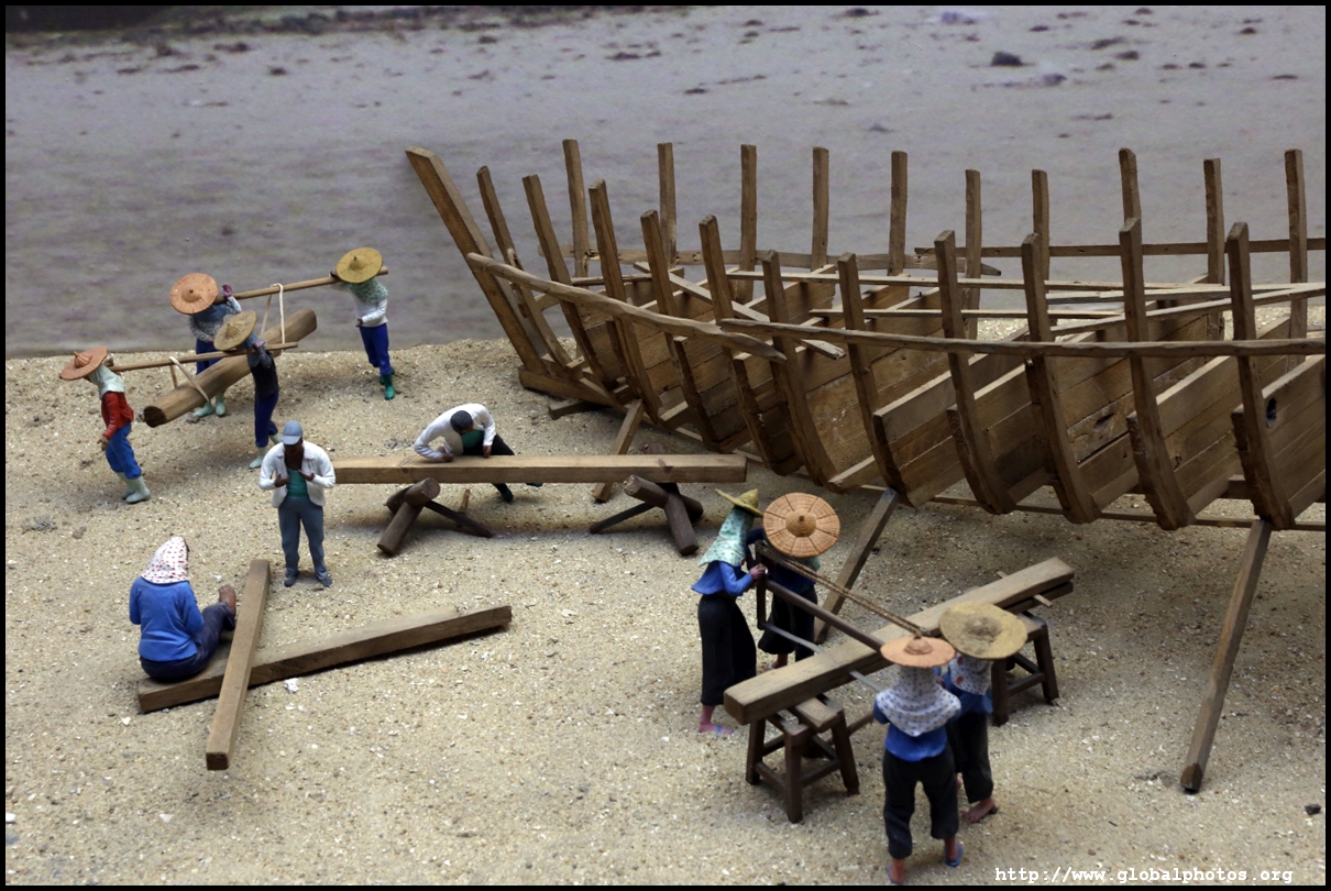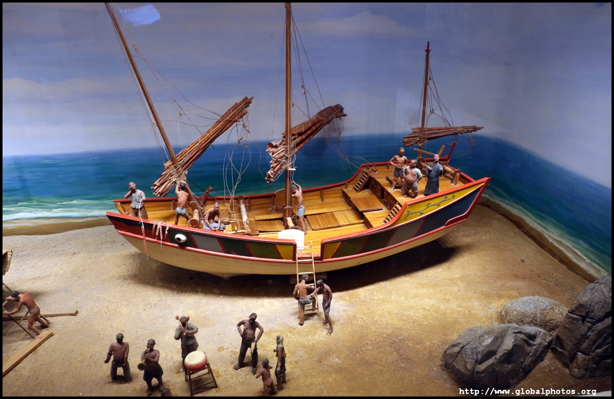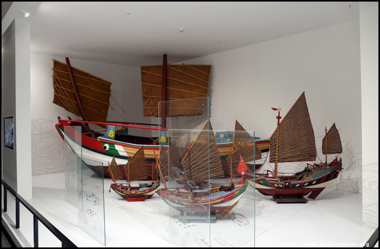 There is also a large exhibition of ship dioramas upstairs. Fujian's fishing boats tend to have rounded hulls, narrow raised bows, and wide sterns shaped like a horse's hoof.
