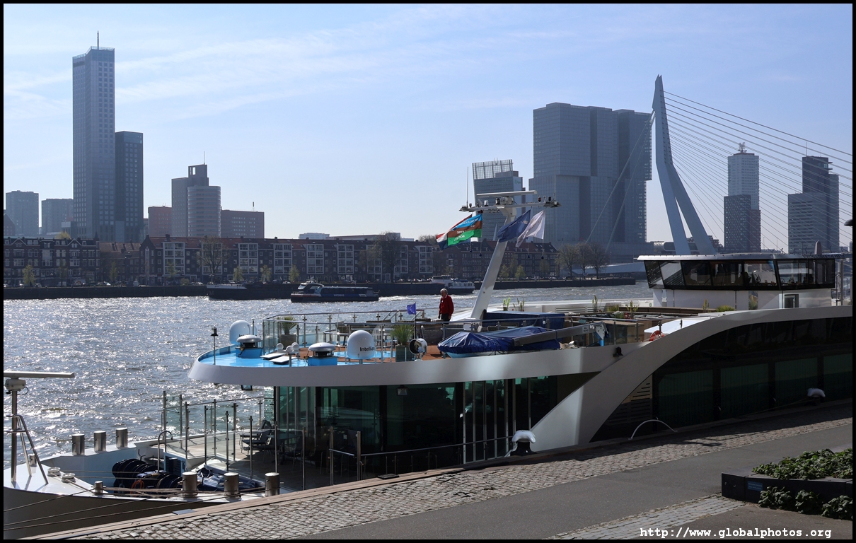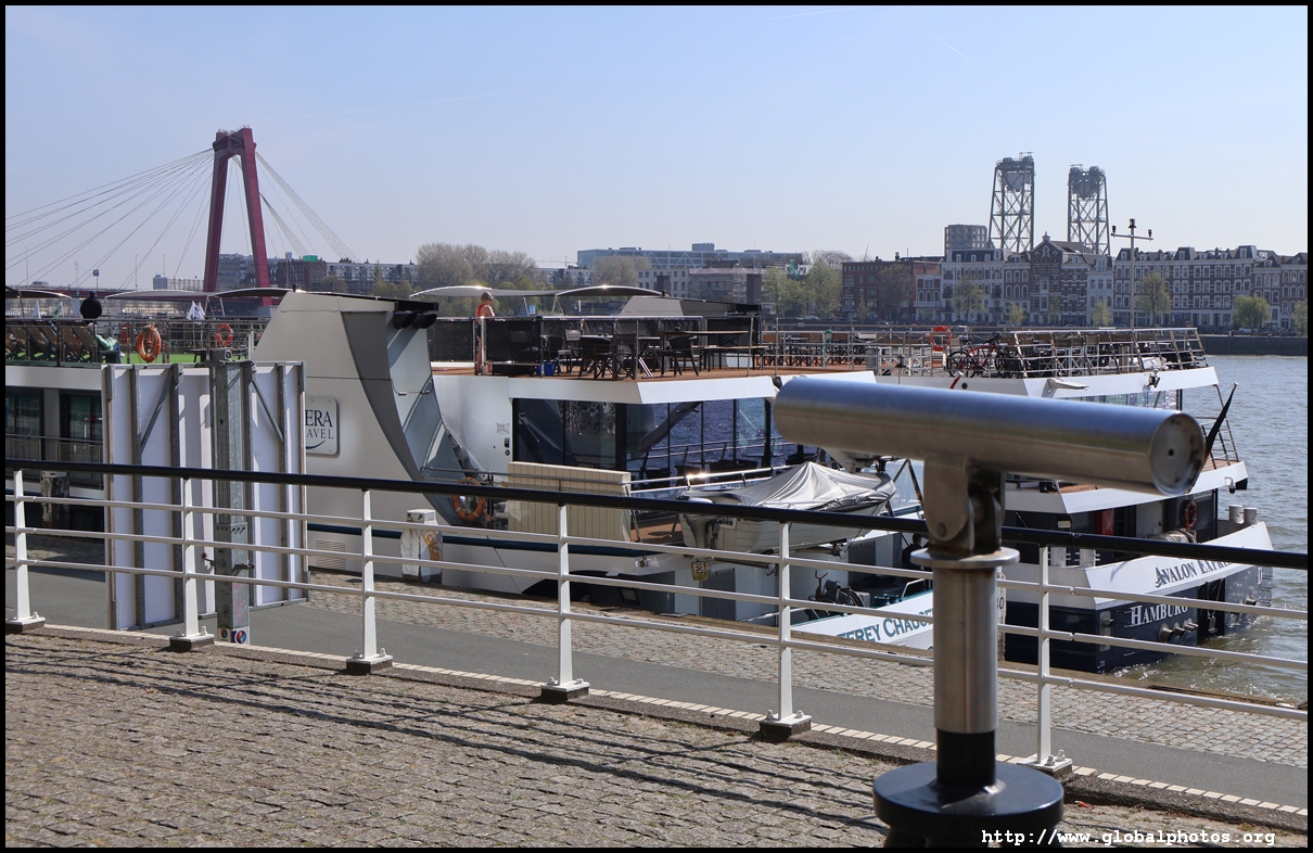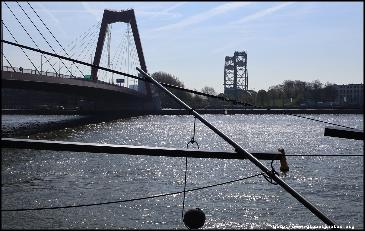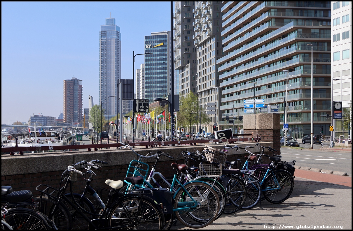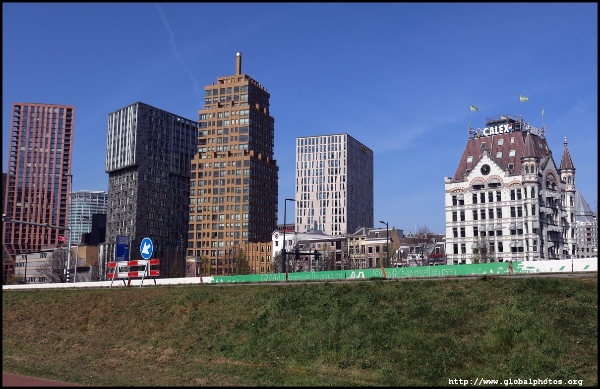 Rotterdam's city centre was almost entirely destroyed during bombings in 1940. As part of redevelopment efforts, new skyscrapers rose along the Boompjes boulevard waterfront.Starting from the Witte Huis, one of few survivors from the bombing, I headed west along the waterfront promenade. The first major building is the Willemswerf, an office building completed in 1989.