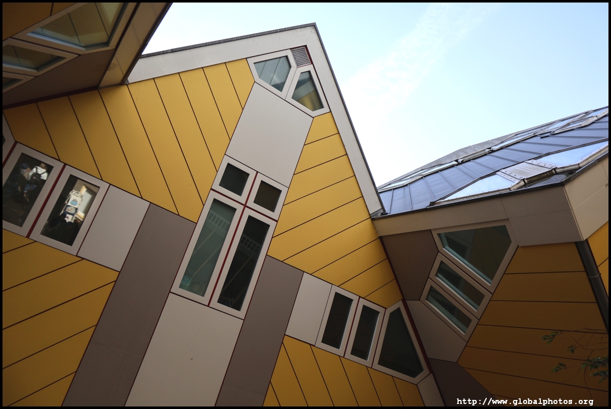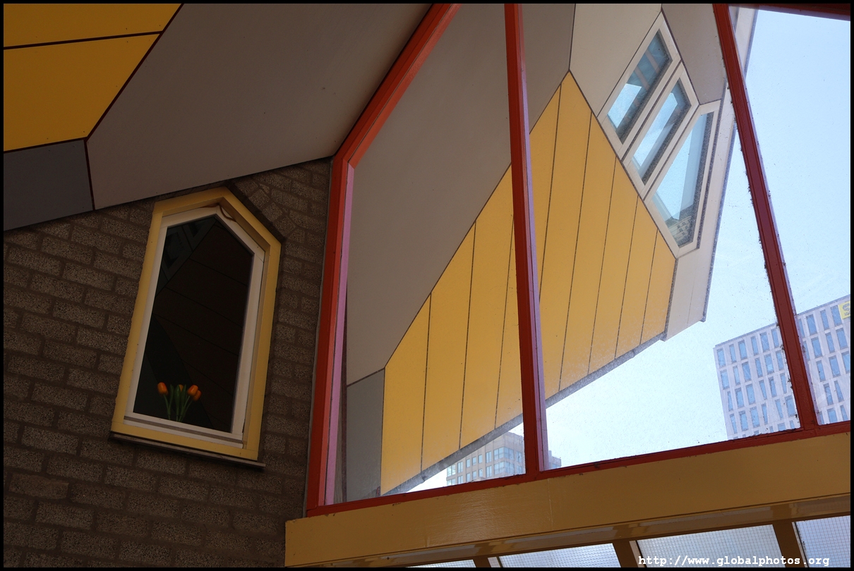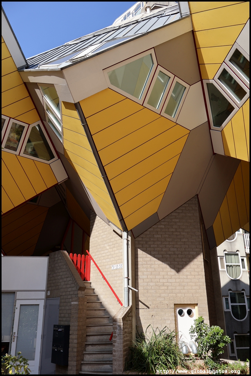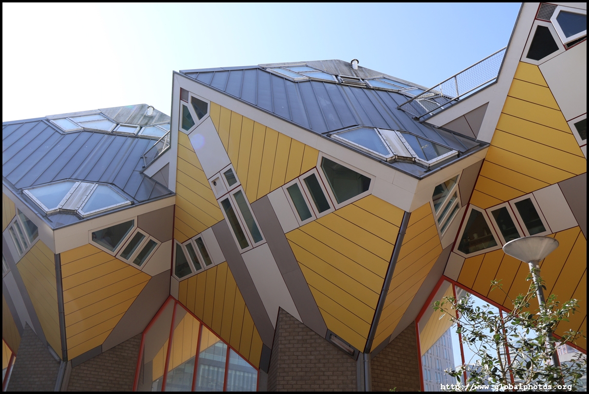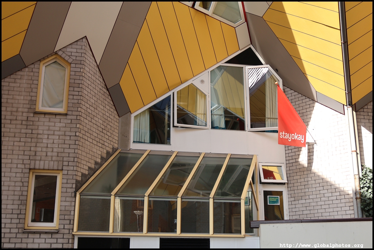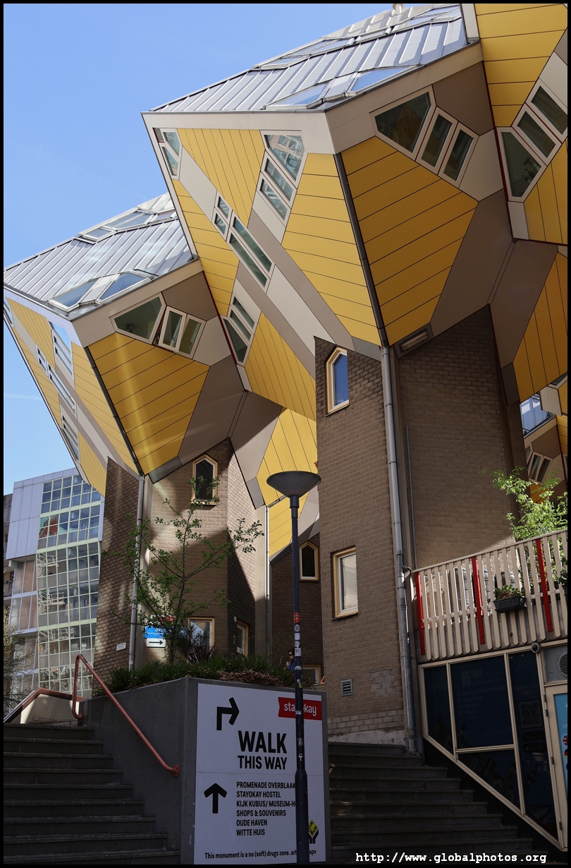 Oddly intriguing from the outside, the Cube House is a set of residential buildings made of cubes angled at 53.5 degrees resting on concrete pillar trunks. Designed by Piet Blom, they first appeared in the mid-1970s near Eindhoven and arrived in Rotterdam in the 1980s. This "forest" of treehouses are placed on top of a busy avenue below, connecting the new housing projects in the Old Harbour with the city.A typical apartment consists of 3 floors. The lower floor consists of the living space with kitchen with downward-facing windows that interact with the street below. Heading up the narrow and steep staircase, you reach the second floor, where there are bedrooms and a toilet. The top floor is a pyramid with plenty of windows that look out onto your neighbours' roofs, and can be flexibly adapted into a lounge or bedroom. It is possible to enter an apartment museum for 3 euros, a price that hasn't changed over the years. First impressions are not good as it feels claustrophobic to climb up the narrow and steep staircase to the lower floor. It also feels very dark due to the windows' angle downwards. Things don't get better upstairs with sharp corners and low ceilings. It's very easy to bump your head due to the irregular layout inside the inverted cube. The final staircase leads to a super hot greenhouse because all the windows face the sun and there are plenty of them. Natural lighting is not an issue here but it is darker than usual on the other 2 floors where you spend most of the time despite it being a sunny day outside.