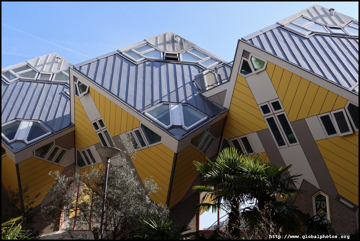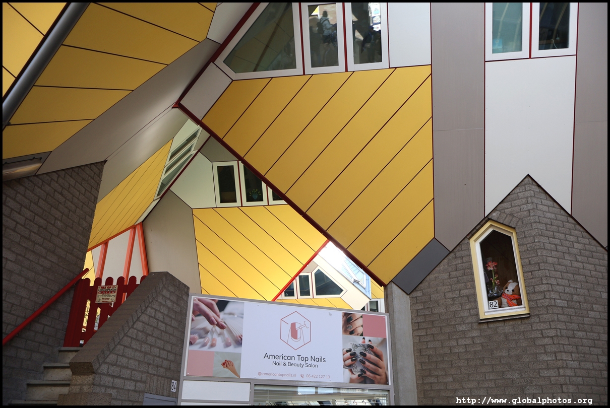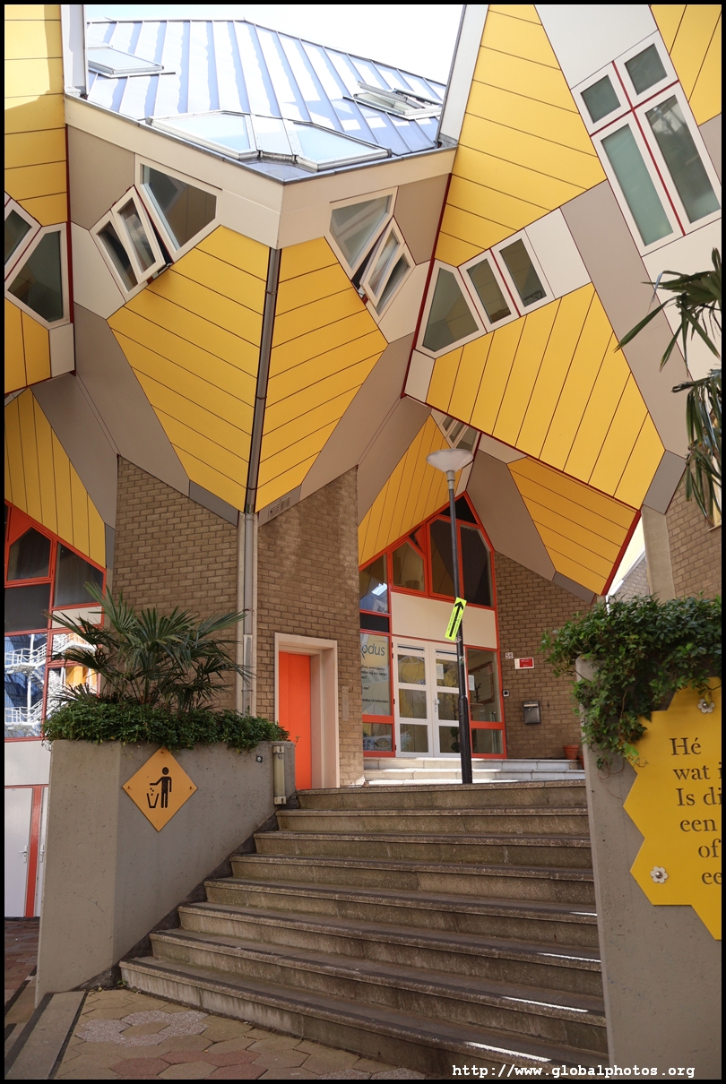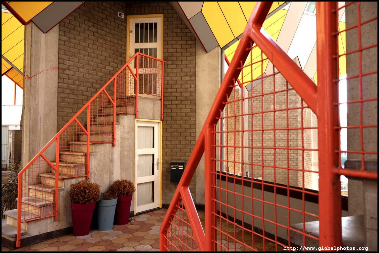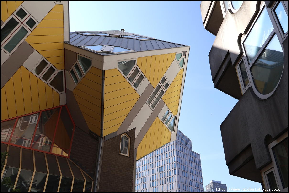 Oddly intriguing from the outside, the Cube House is a set of residential buildings made of cubes angled at 53.5 degrees resting on concrete pillar trunks. Designed by Piet Blom, they first appeared in the mid-1970s near Eindhoven and arrived in Rotterdam in the 1980s. This "forest" of treehouses are placed on top of a busy avenue below, connecting the new housing projects in the Old Harbour with the city.A typical apartment consists of 3 floors. The lower floor consists of the living space with kitchen with downward-facing windows that interact with the street below. Heading up the narrow and steep staircase, you reach the second floor, where there are bedrooms and a toilet. The top floor is a pyramid with plenty of windows that look out onto your neighbours' roofs, and can be flexibly adapted into a lounge or bedroom. It is possible to enter an apartment museum for 3 euros, a price that hasn't changed over the years. First impressions are not good as it feels claustrophobic to climb up the narrow and steep staircase to the lower floor. It also feels very dark due to the windows' angle downwards. Things don't get better upstairs with sharp corners and low ceilings. It's very easy to bump your head due to the irregular layout inside the inverted cube. The final staircase leads to a super hot greenhouse because all the windows face the sun and there are plenty of them. Natural lighting is not an issue here but it is darker than usual on the other 2 floors where you spend most of the time despite it being a sunny day outside.